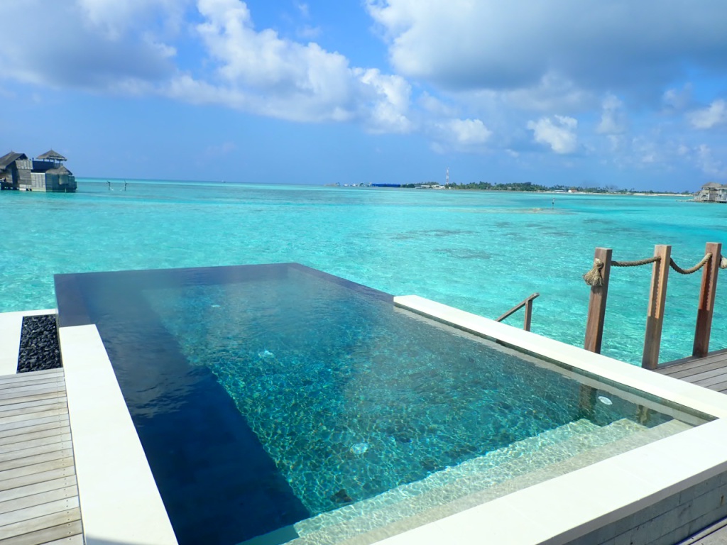 海に下りる階段も、もちろんありますよギリは遠浅ラグーンに囲まれているので、ヴィラの周りは浅いです。 このソーダブルーの海を、歩いて行けます。