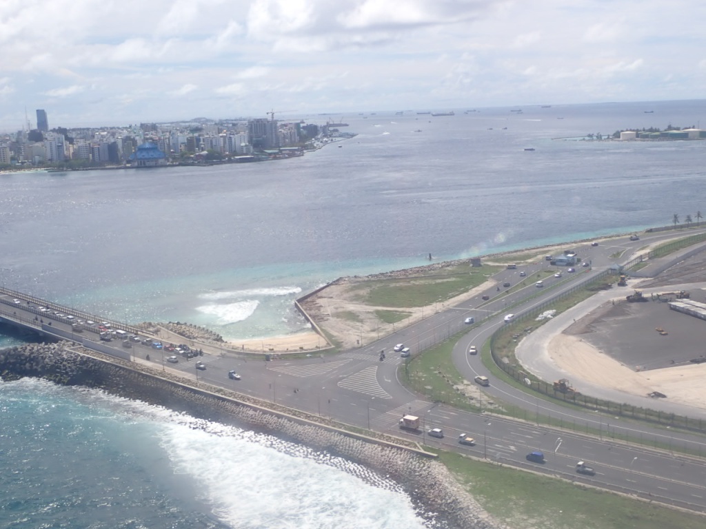 夜にモルディブ到着する便を利用することが多いので、明るい時間帯の国際線は青い海を見られて良いですね。