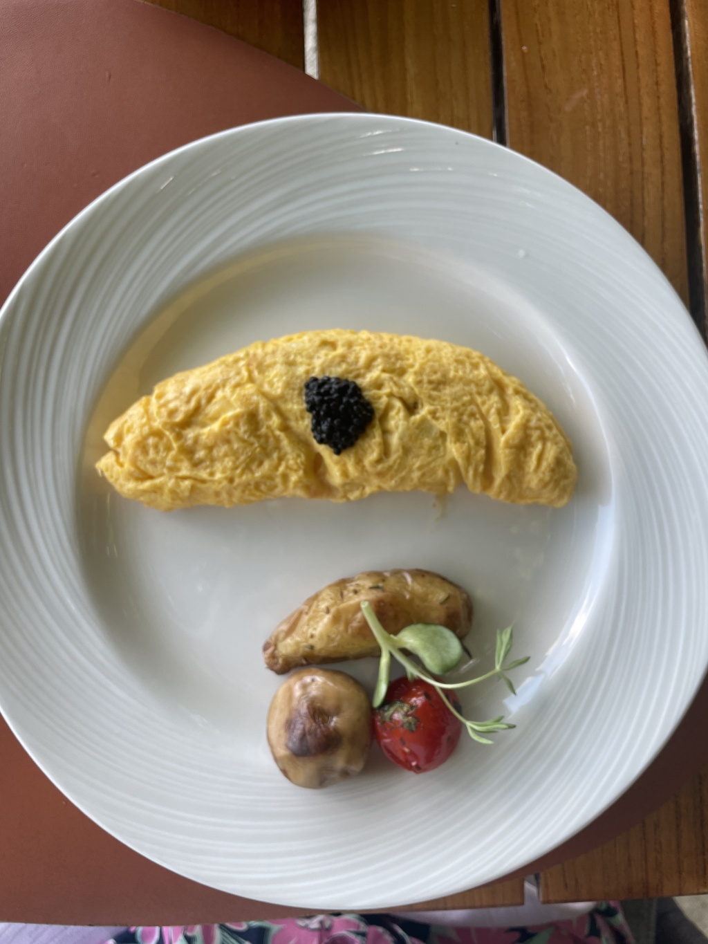 「モルディビアン・ロブスター&クラブ(蟹)オムレツ、キャビアのせ」
