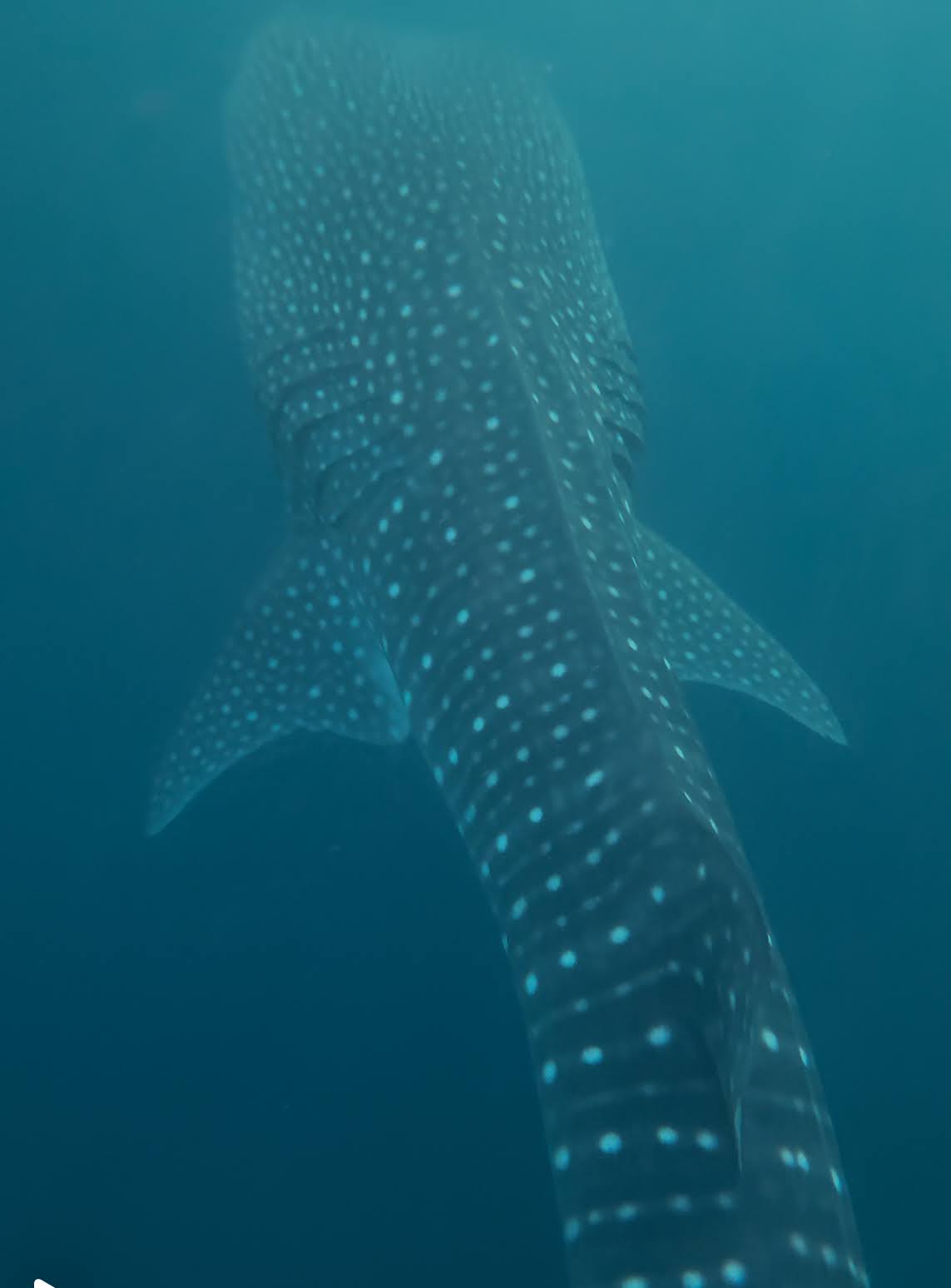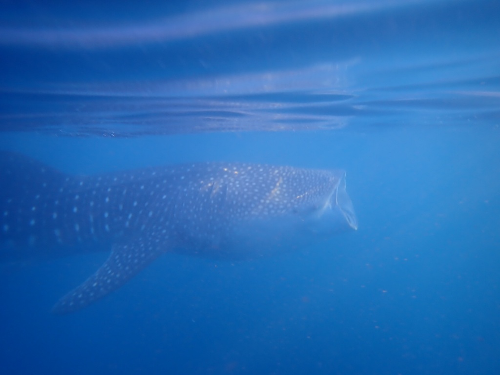 10秒ほど一緒に泳いだけど深く潜ってしまったが、ガイドと一緒に泳いでいくと、また別のジンベエが現れました!そして、また泳ぐとまた別のジンベエと遭遇!!