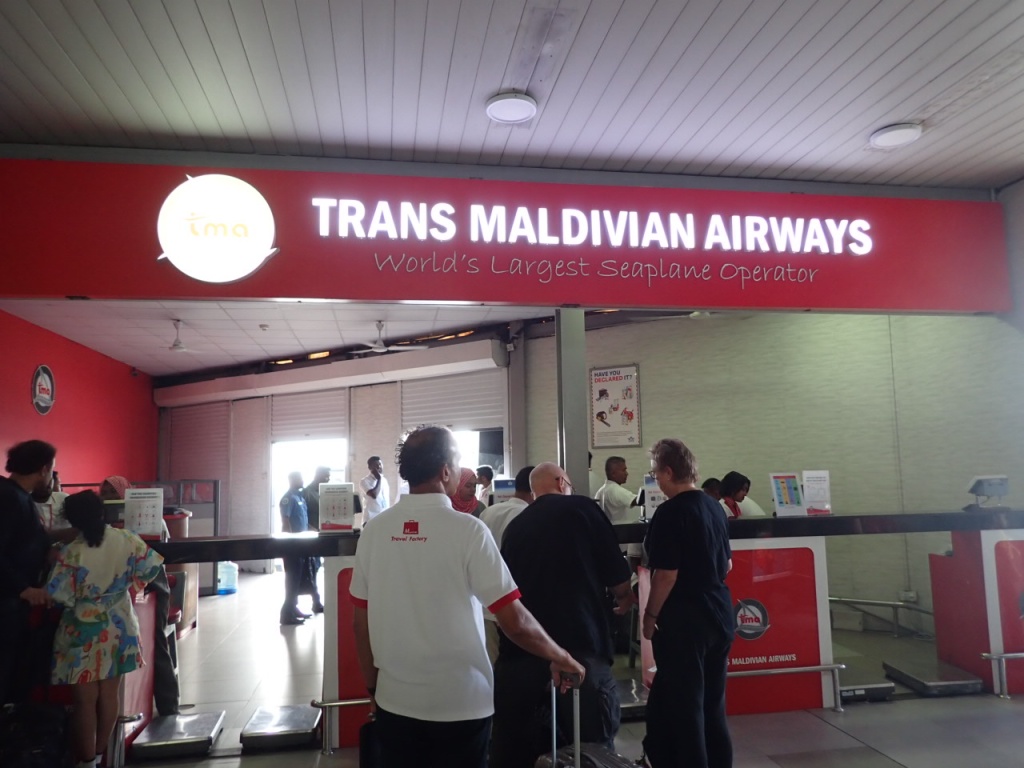 現地係員と出会い、一緒に水上飛行機チェックインカウンターへ