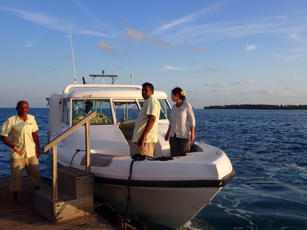 リゾートからの迎えのボートに乗ります