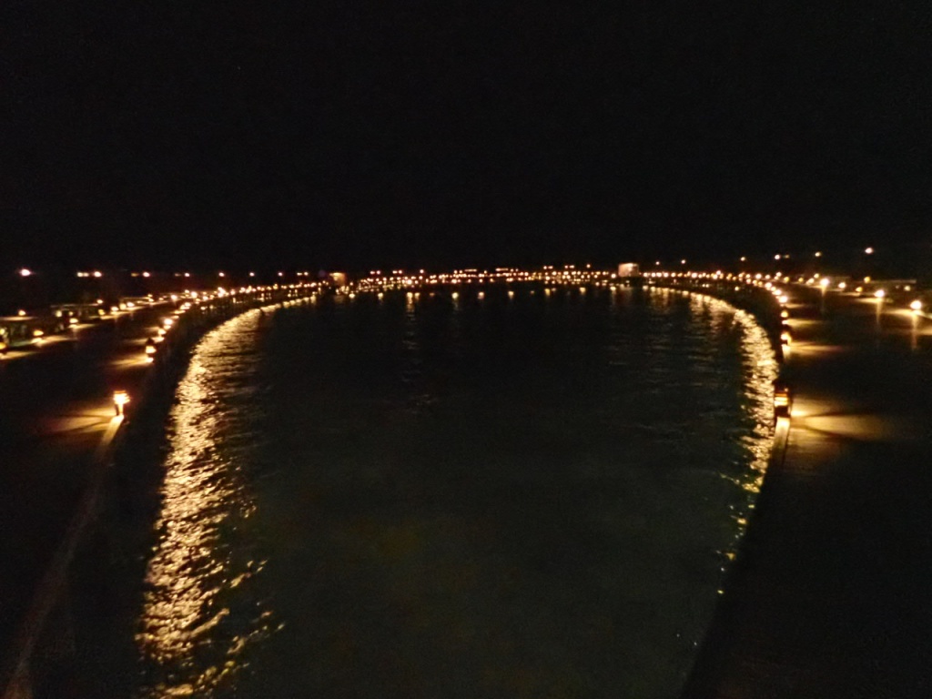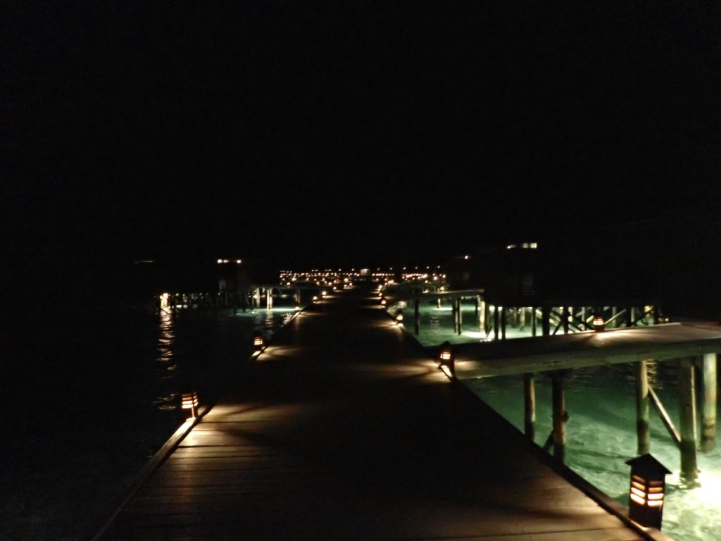 水上ヴィラ群がライトアップ