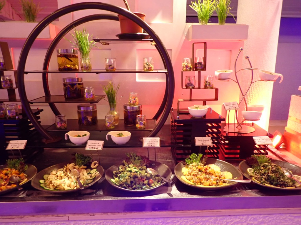 - スパイシー・グリル・オクトパスとマンゴーのサラダ、アーティーチョークとヤシの新芽のサラダ
