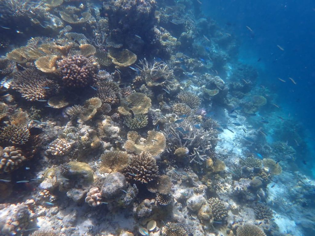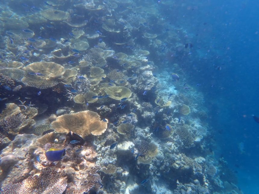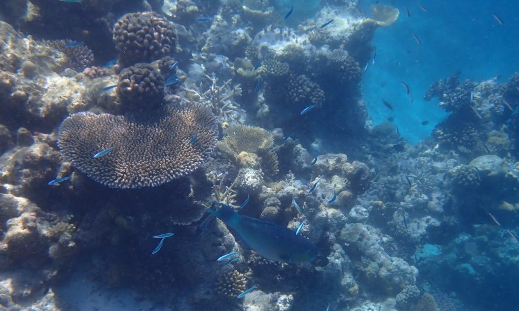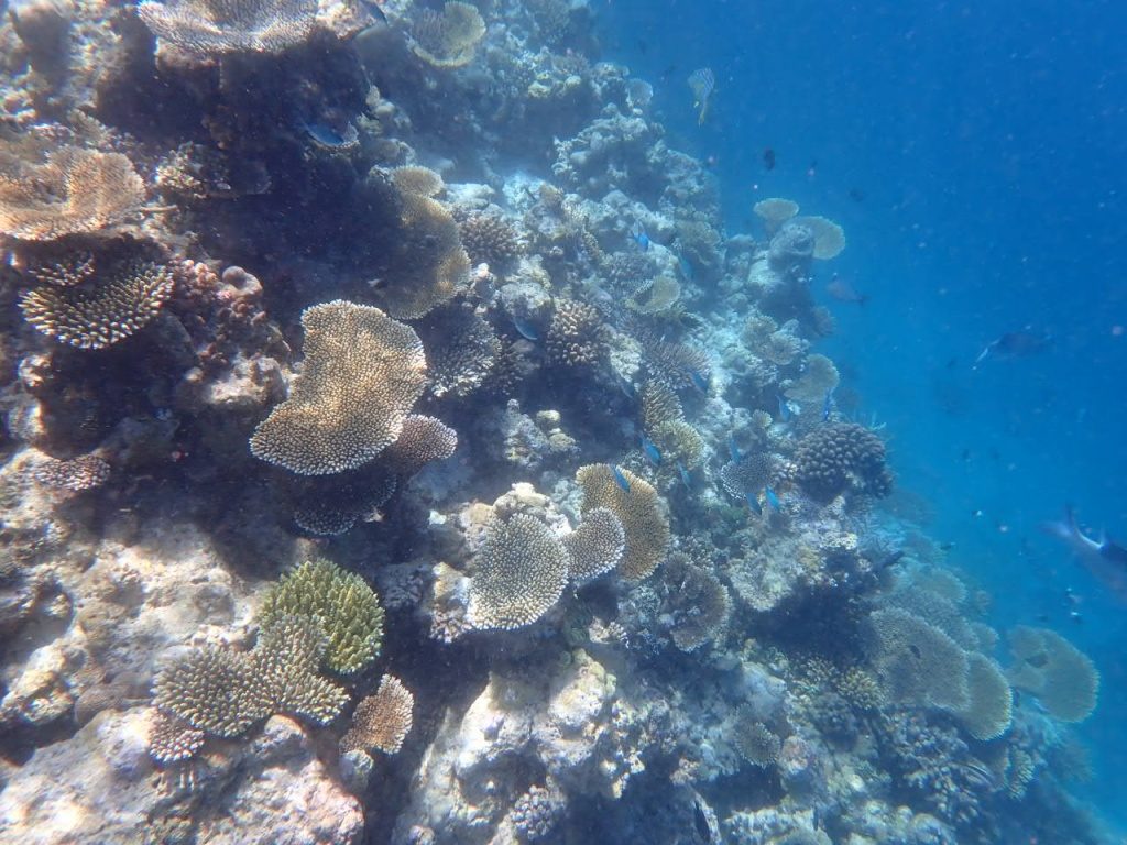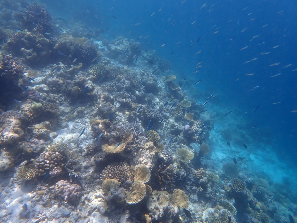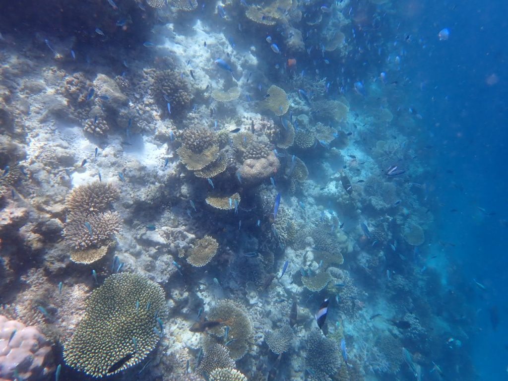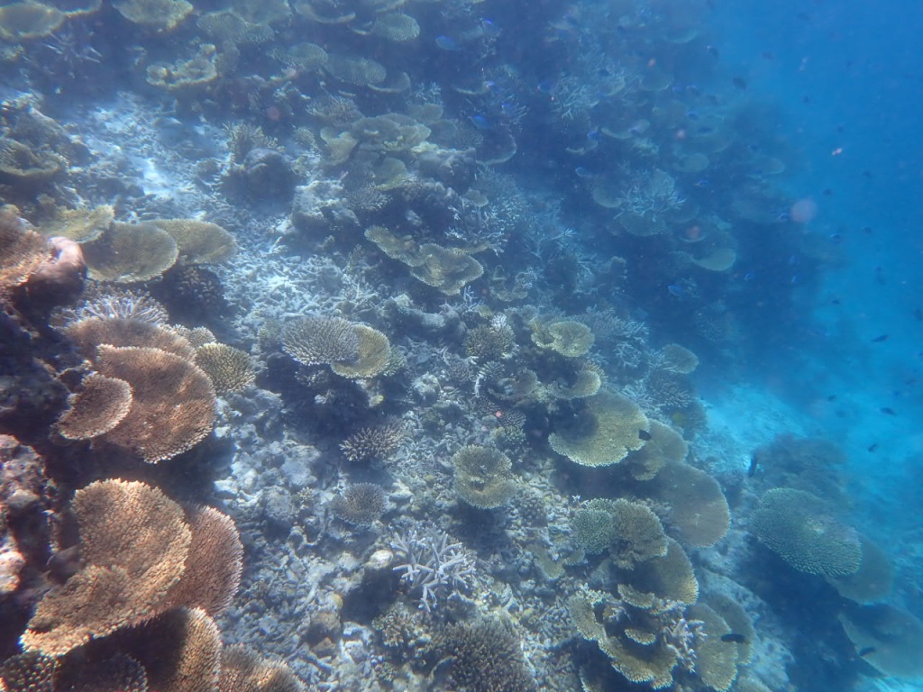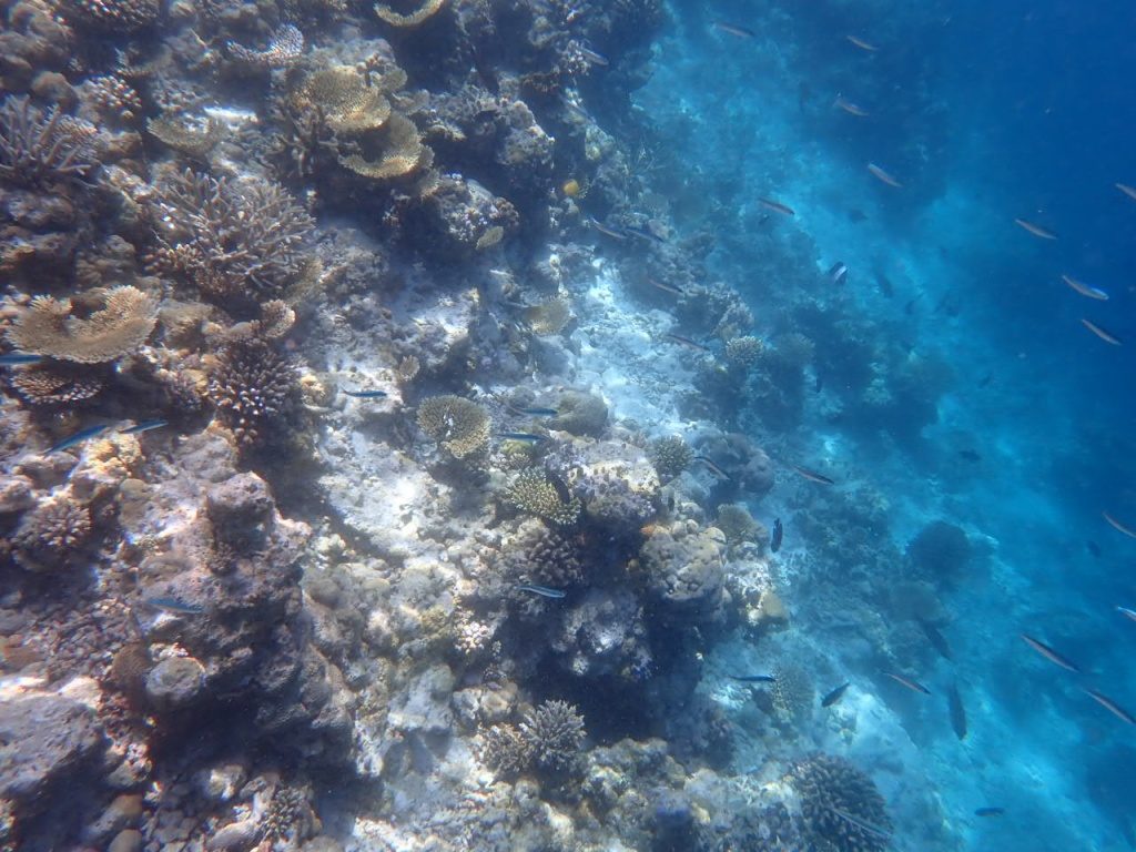 浅瀬のラグーンとドロップオフの境目(リーフエッジ)をシュノーケルします