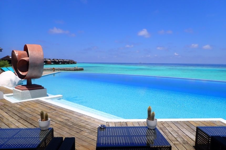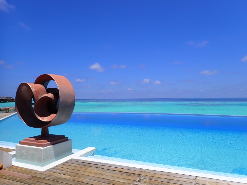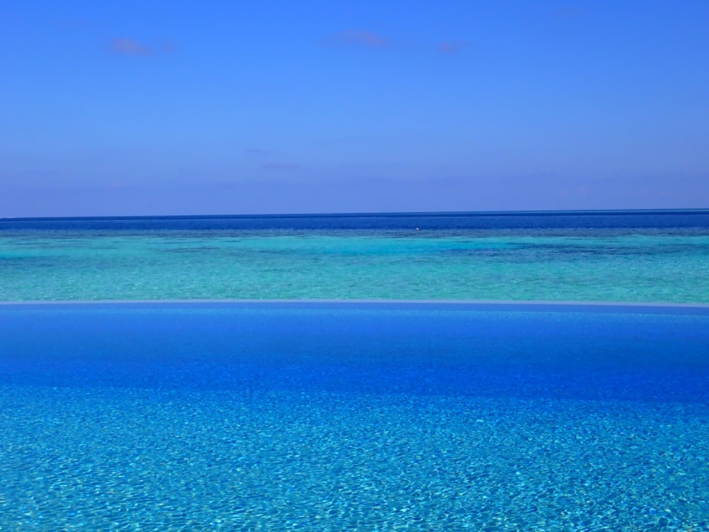 プールはインフィニティで、プールと海の青のコントラストがとても鮮やか