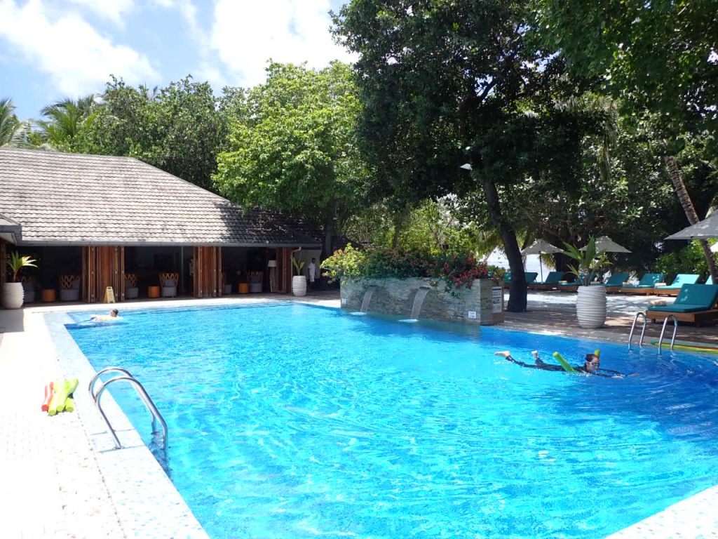 大満足のシュノーケリング・ツアーから戻ってきて、お部屋に戻る前にプール&バー「AQUA」に立ち寄りました。
