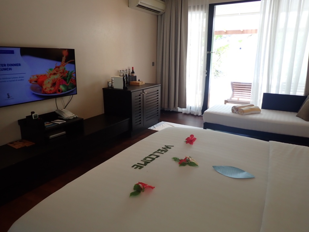 テレビやミニバーに含まれるものなどは、デラックス水上ヴィラと同じです