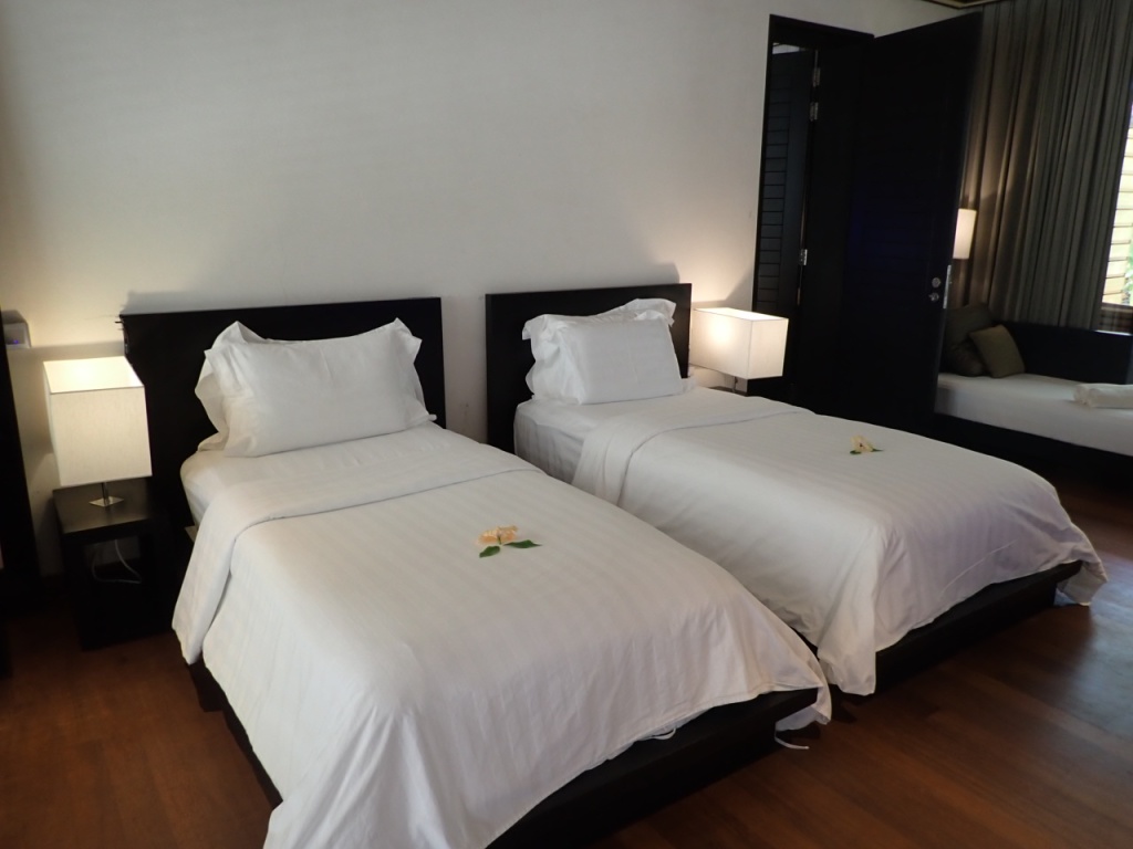 ビーチヴィラの「ダブルベッド・ルーム」と「ツインベッド・ルーム」がコネクティングドアでつながっている2ベッドルームタイプ(おとな4名+子供2名まで宿泊可能)