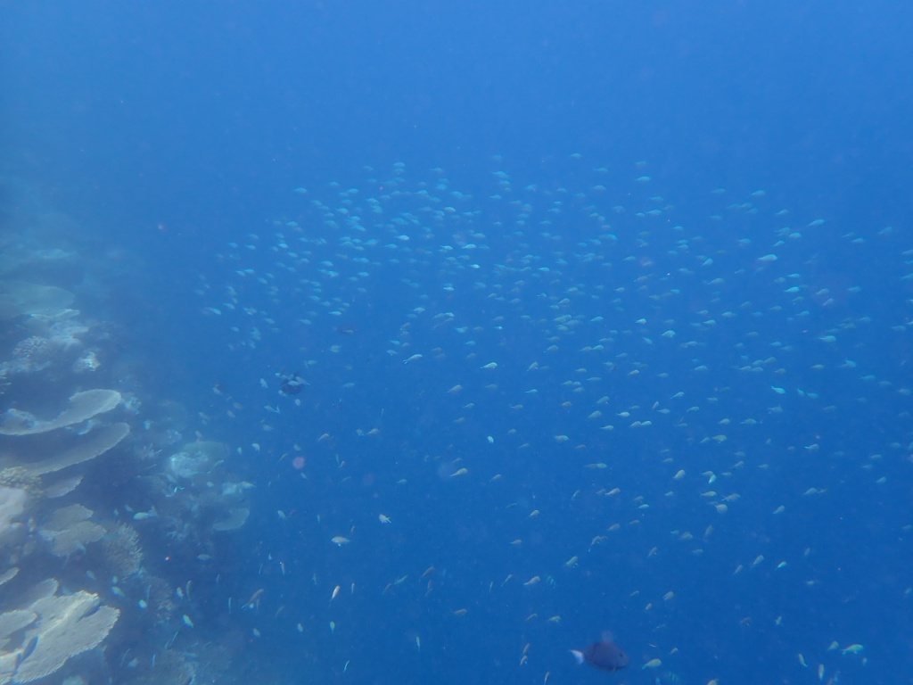 島に近いエリアはリーフエッジがダイナミックで、魚がたーーーくさん!!