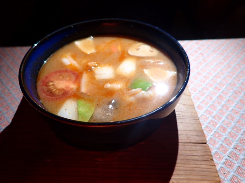コリアンダー好きなので抵抗ないですが、コリアンダーの味はさほど強くなく、レモンの爽やかな酸味もあり味わい深いスープでした。おいしかったです。