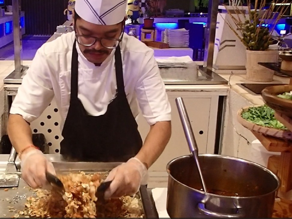 本格的に、「カチャカチャ…」とテンポ良く、切り炒めています。