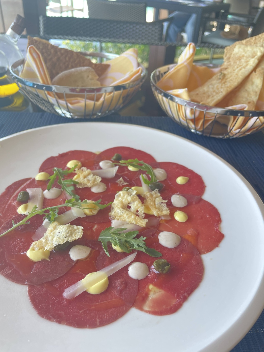 薄切りビーフ+サフランとガーリック、ツナマヨネーズのソースがとても相性よく、とても美味しかったです。