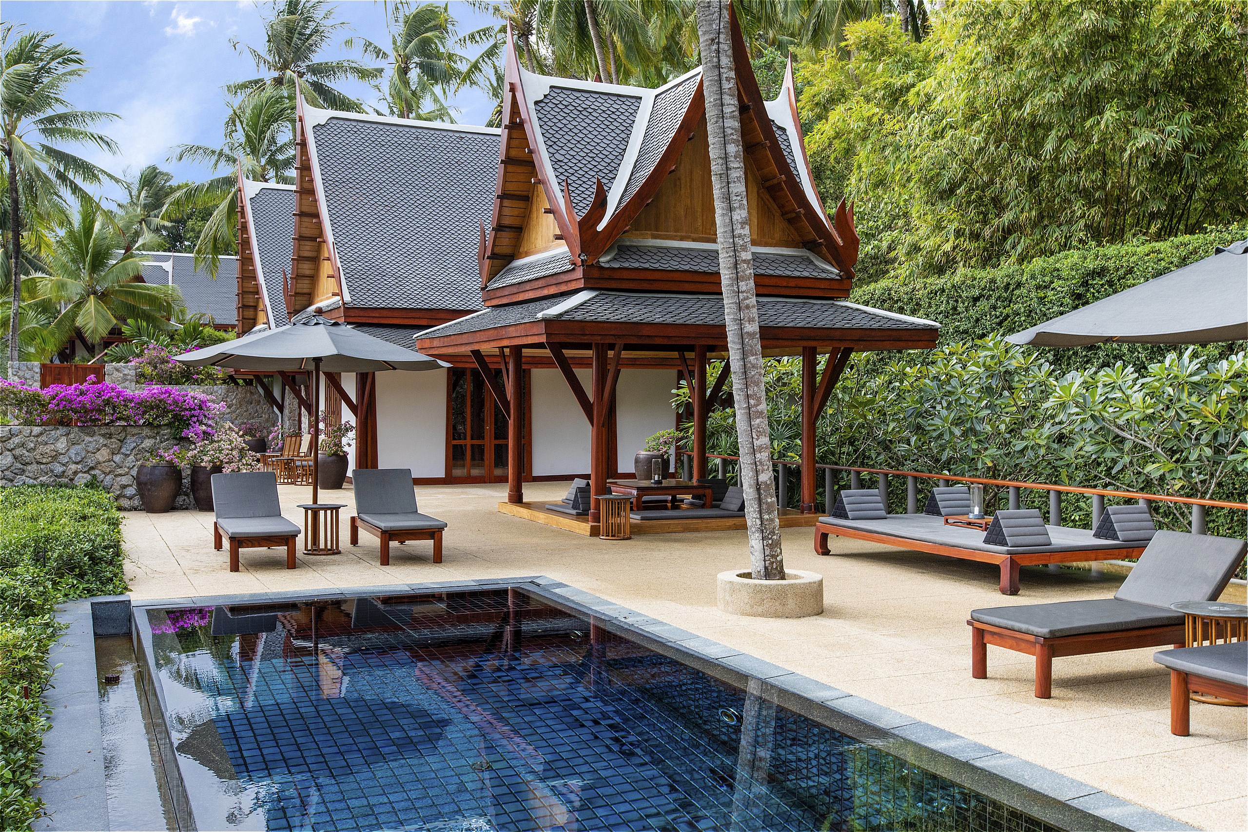 * 高い椰子の木が隠れ家を取り巻く、タイの伝統建築を取り入れたエレガントなパビリオン&ヴィラ