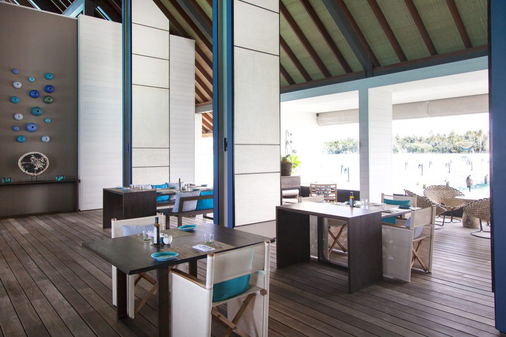 *ターコイズラグーンが広がる海に、橋でつながれた3つの島と、スパの島、テニスコートの島、4ベッドルームのオーナーズヴィラ島の、6つの小さな島で構成されたリゾート