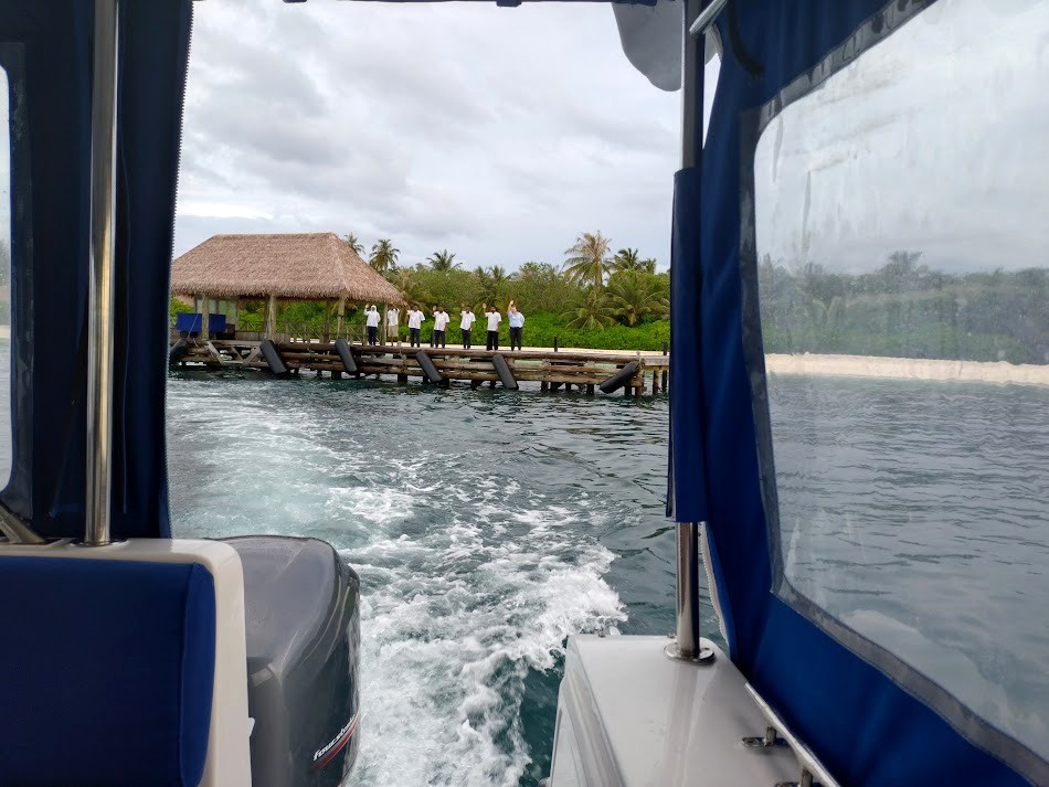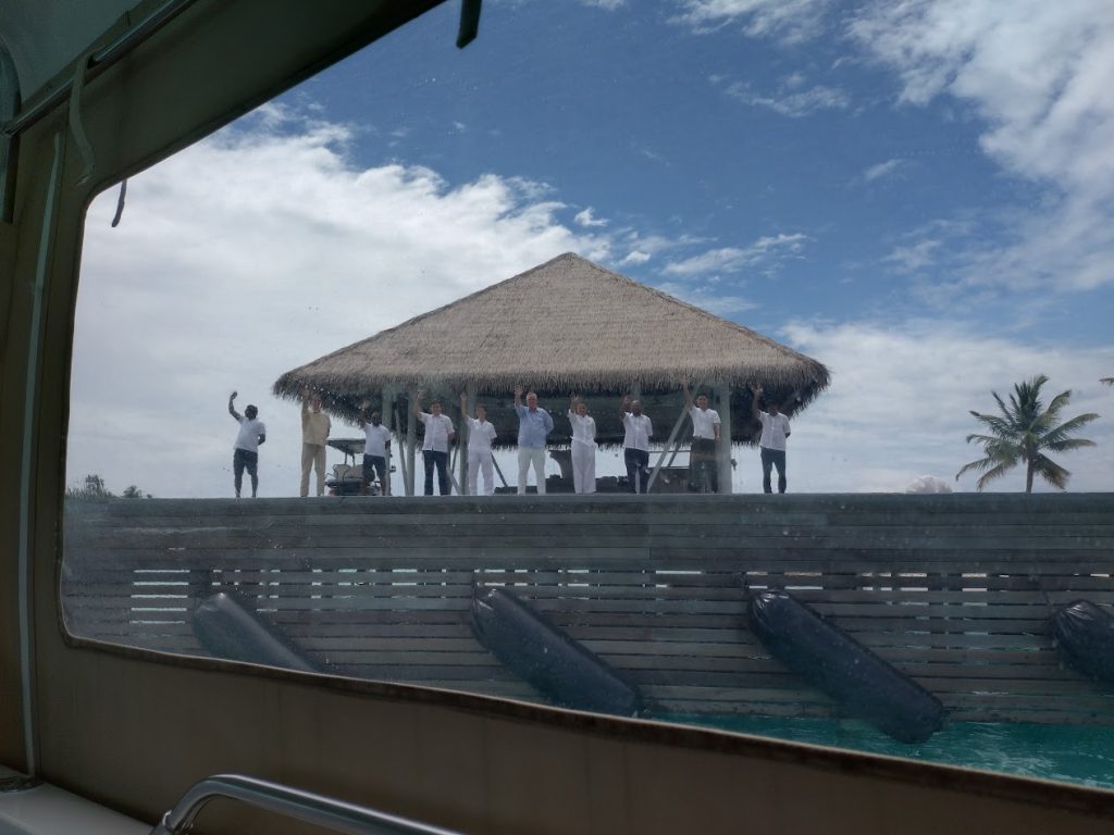 マーレを深夜に経つ便だったので、当初はバトラーから「20時にリゾートを出てマーレへ向かいます」と案内があったのですが、悪天候のためリゾートからの出発が早まることになり、最終的には17時にラゲッジのピックアップとなりました。