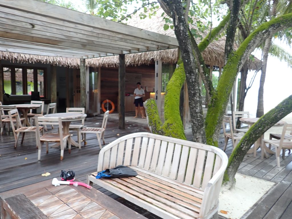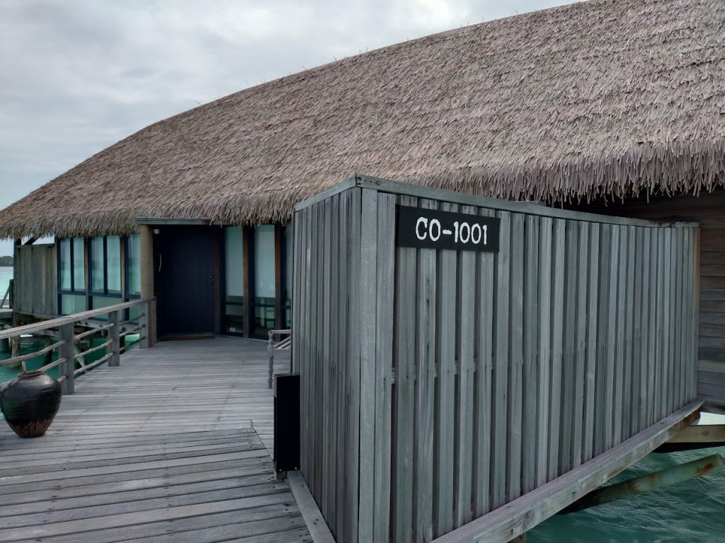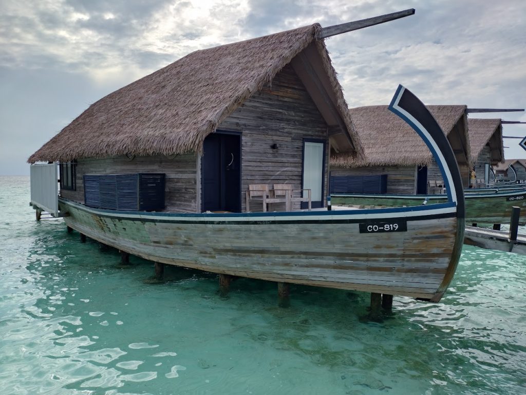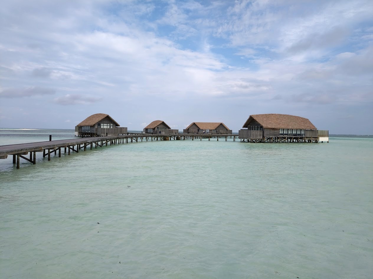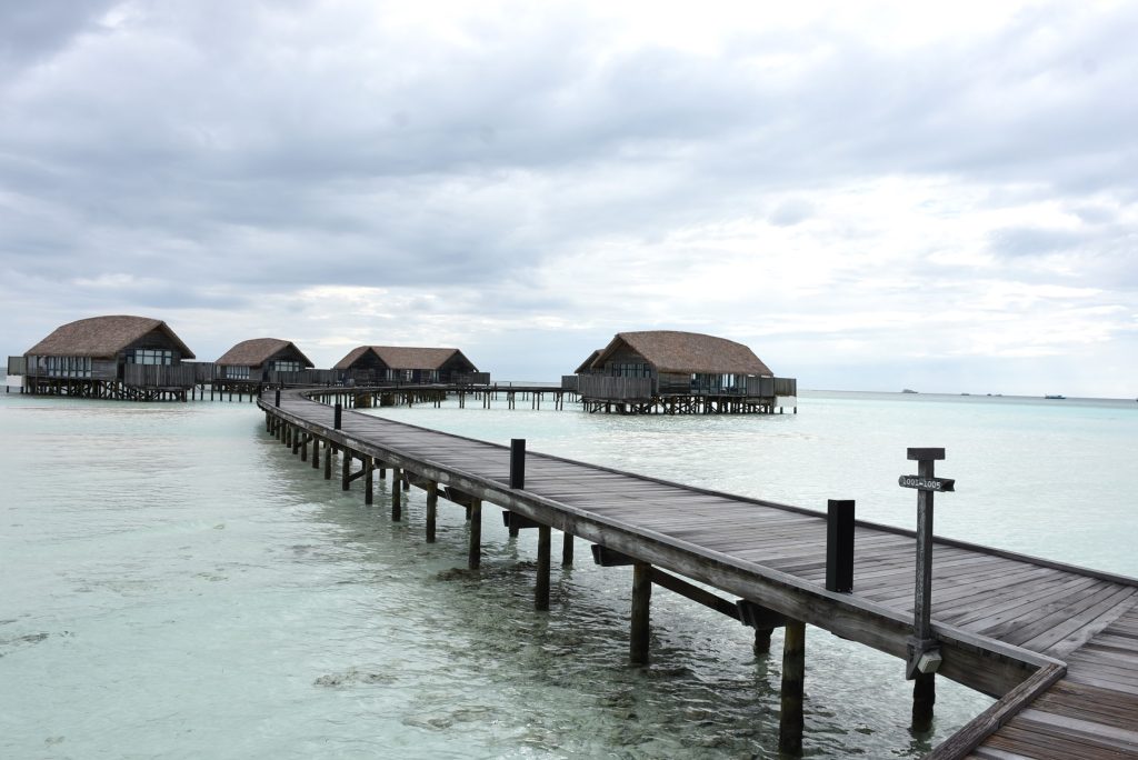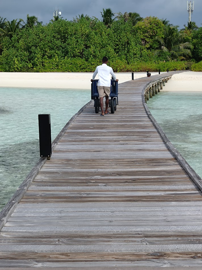ココアは小さな島ではあるのですが、ヴィラはすべてが水上にあり、ヴィラとメイン施設間の移動は距離のある桟橋を歩きます。なかなかの移動になって健康的な滞在が出来ます。スタッフが手押し車でラゲッジを運んでいる光景が見られて、なんともよいな~と感じました。