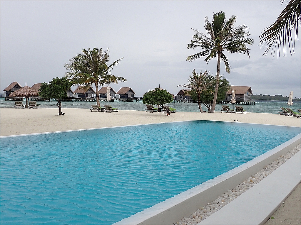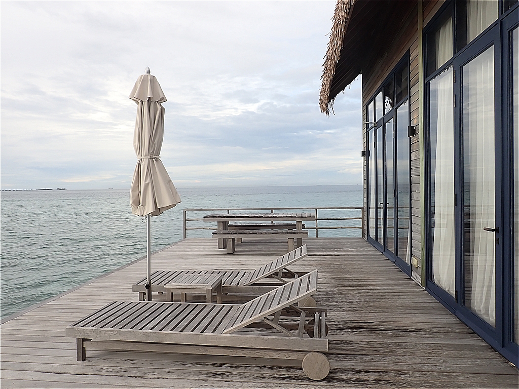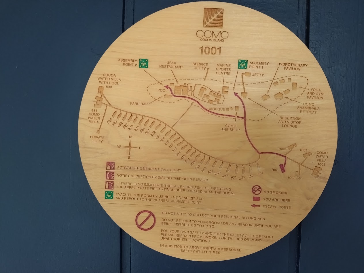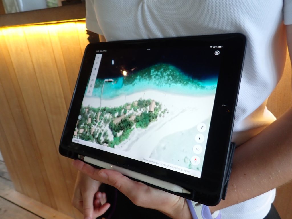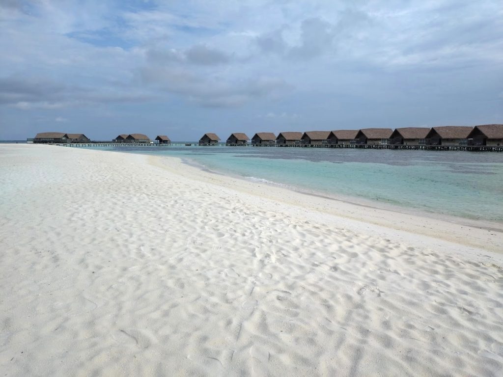 ココアは小さな島ではあるのですが、ヴィラはすべてが水上にあり、ヴィラとメイン施設間の移動は距離のある桟橋を歩きます。なかなかの移動になって健康的な滞在が出来ます。スタッフが手押し車でラゲッジを運んでいる光景が見られて、なんともよいな~と感じました。