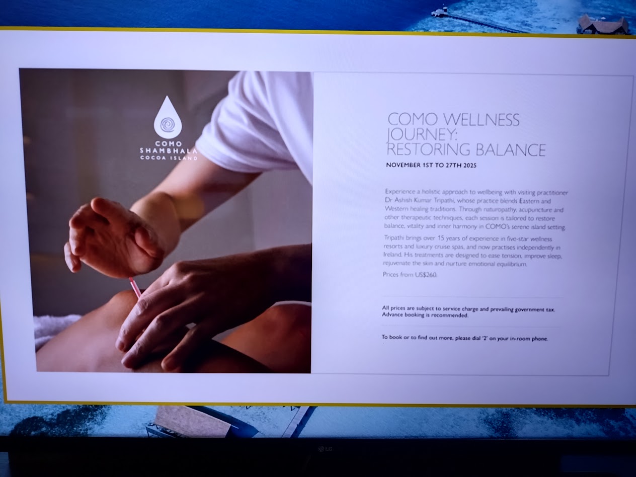 ココアでのウェルネスは期待を裏切らず素晴らしかったです。有名なDr. Ashishがちょうど滞在中で、「Facial Rejuvenation Acufuncture」のスペシャルな施術(鍼を使った治療)が受けられるというので、早速、到着翌日の10時に予約をしました。