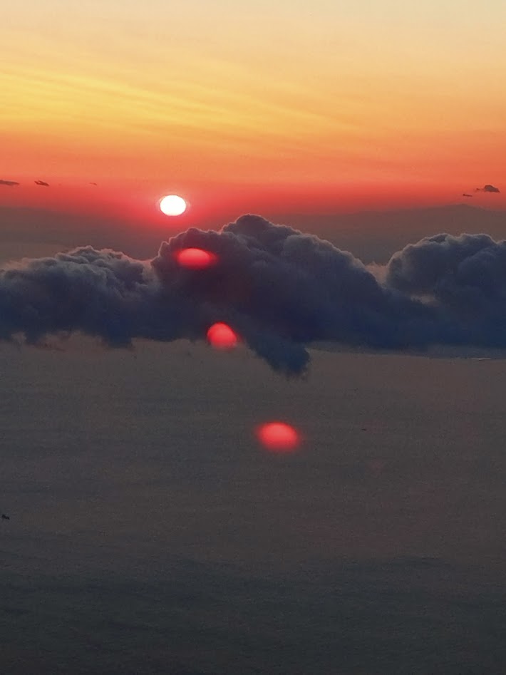 2日目の午後の読書中に、光を感じて顔を上げると、僅かながら沈む太陽の光が雲と芸術を醸し出し、貴重な太陽を拝めたこの時の感動は格別でした。