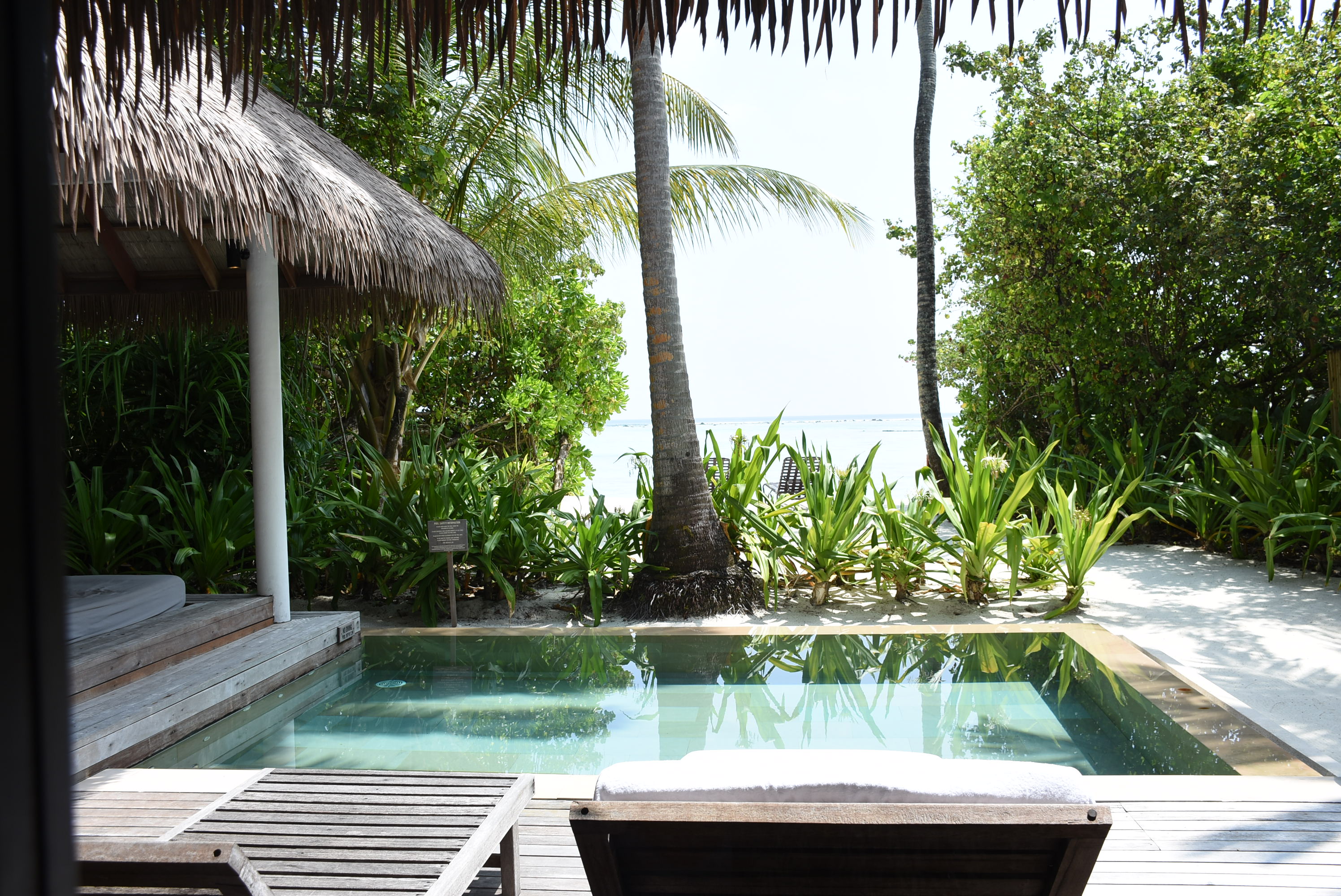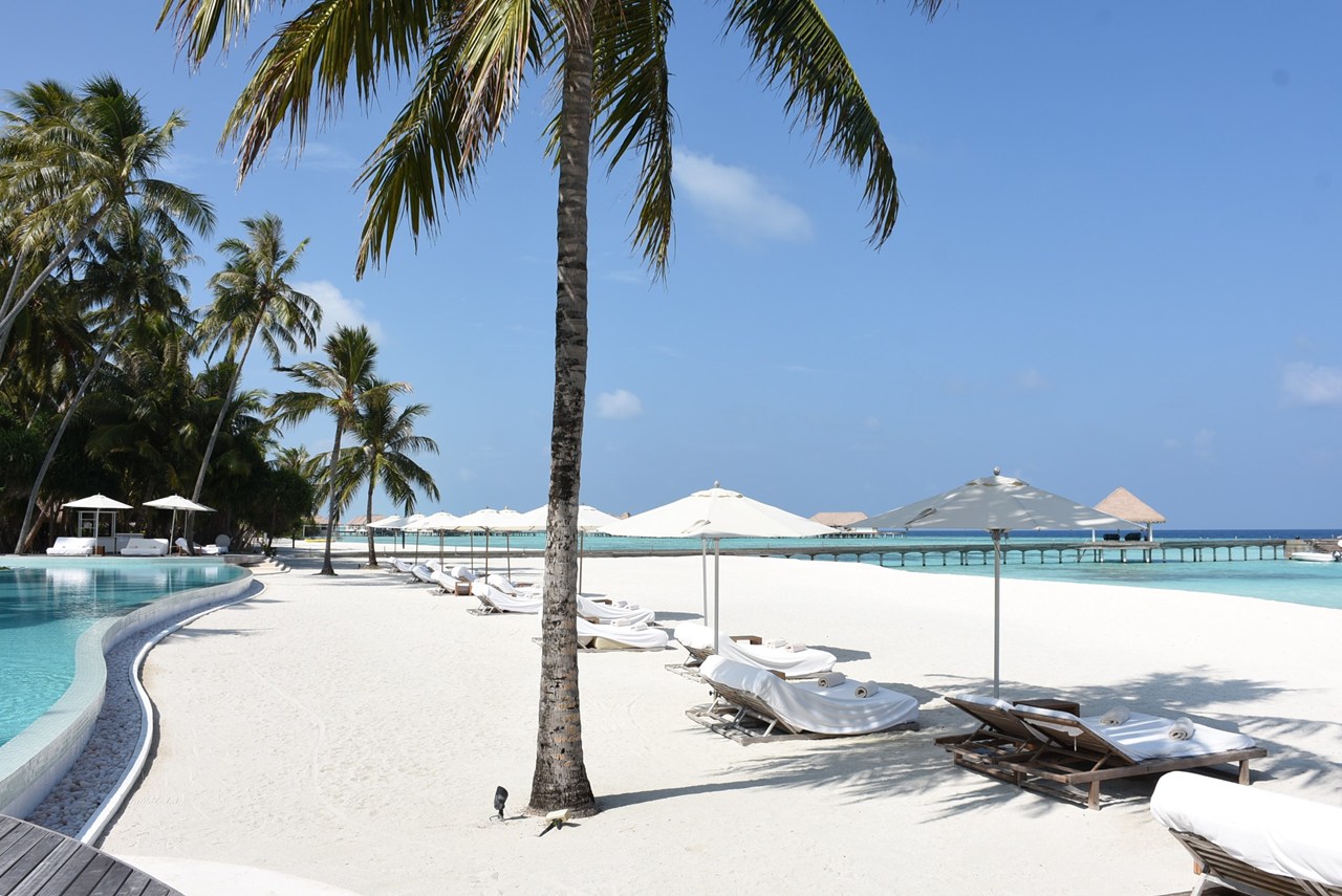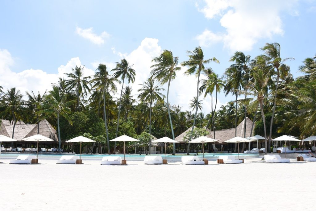真っ白なビーチは貝殻や珊瑚が混じりふっかふかというわけにはいかないのですが、それがまた手つかずのリゾートの証拠だと感じました。レストランのサンドカーペットも心地良く、滞在中ずっと裸足で過ごしていました。