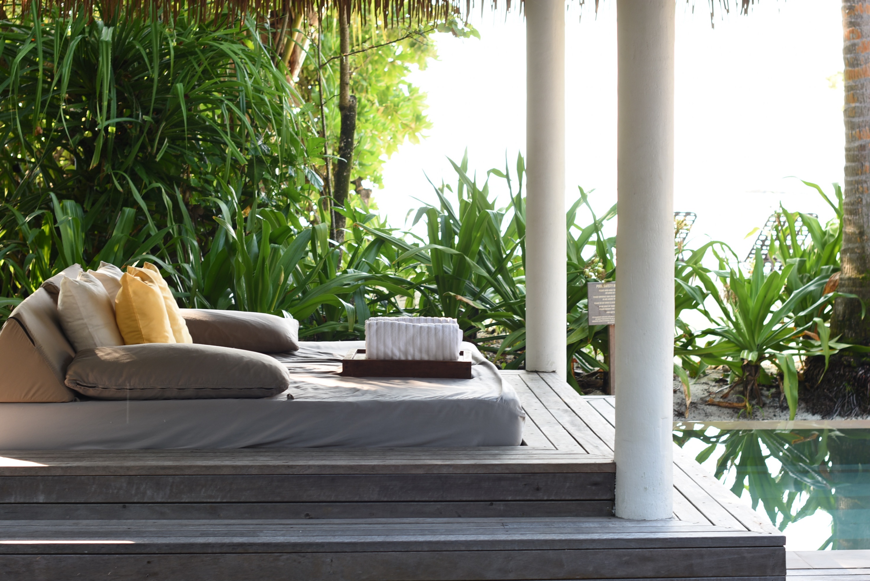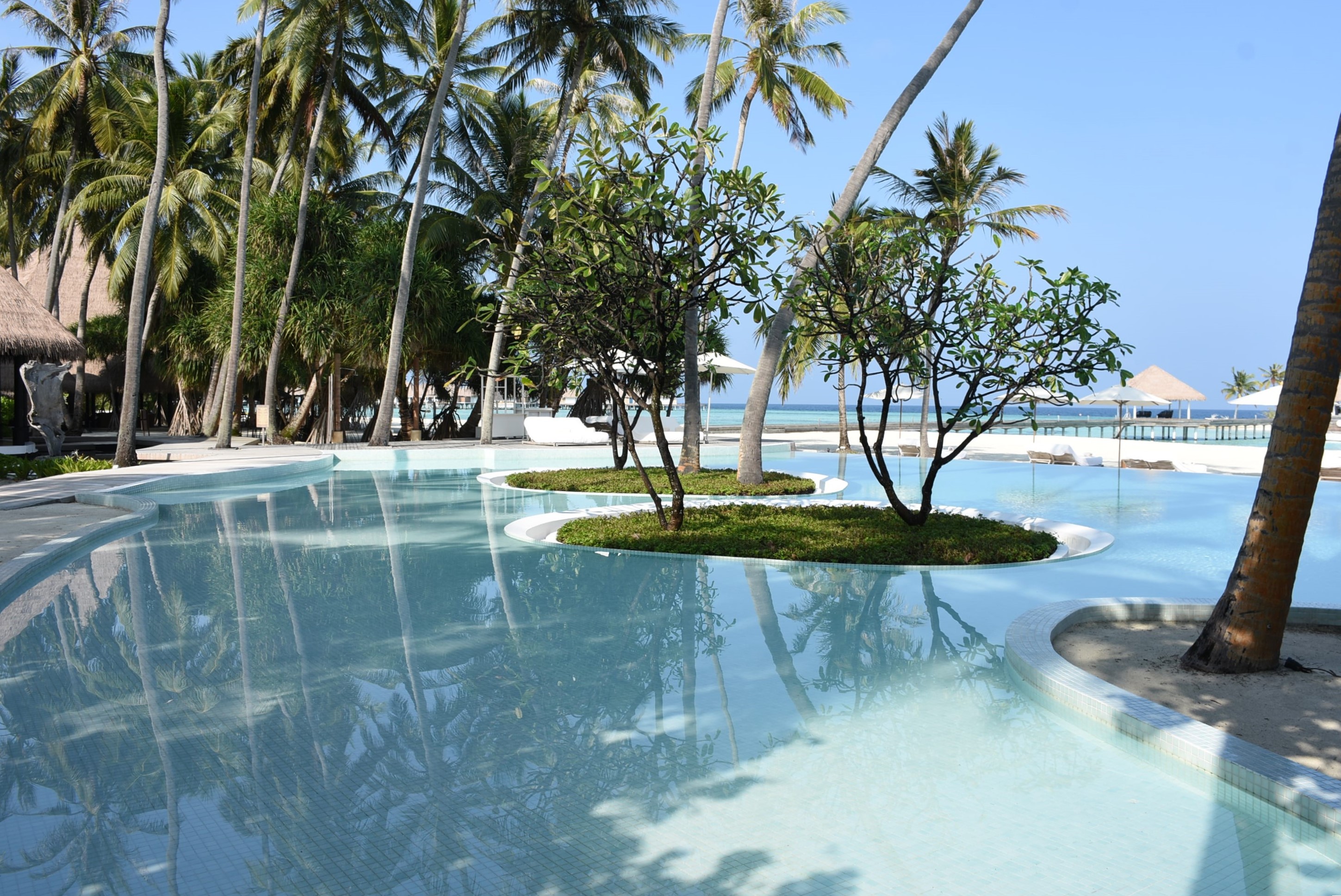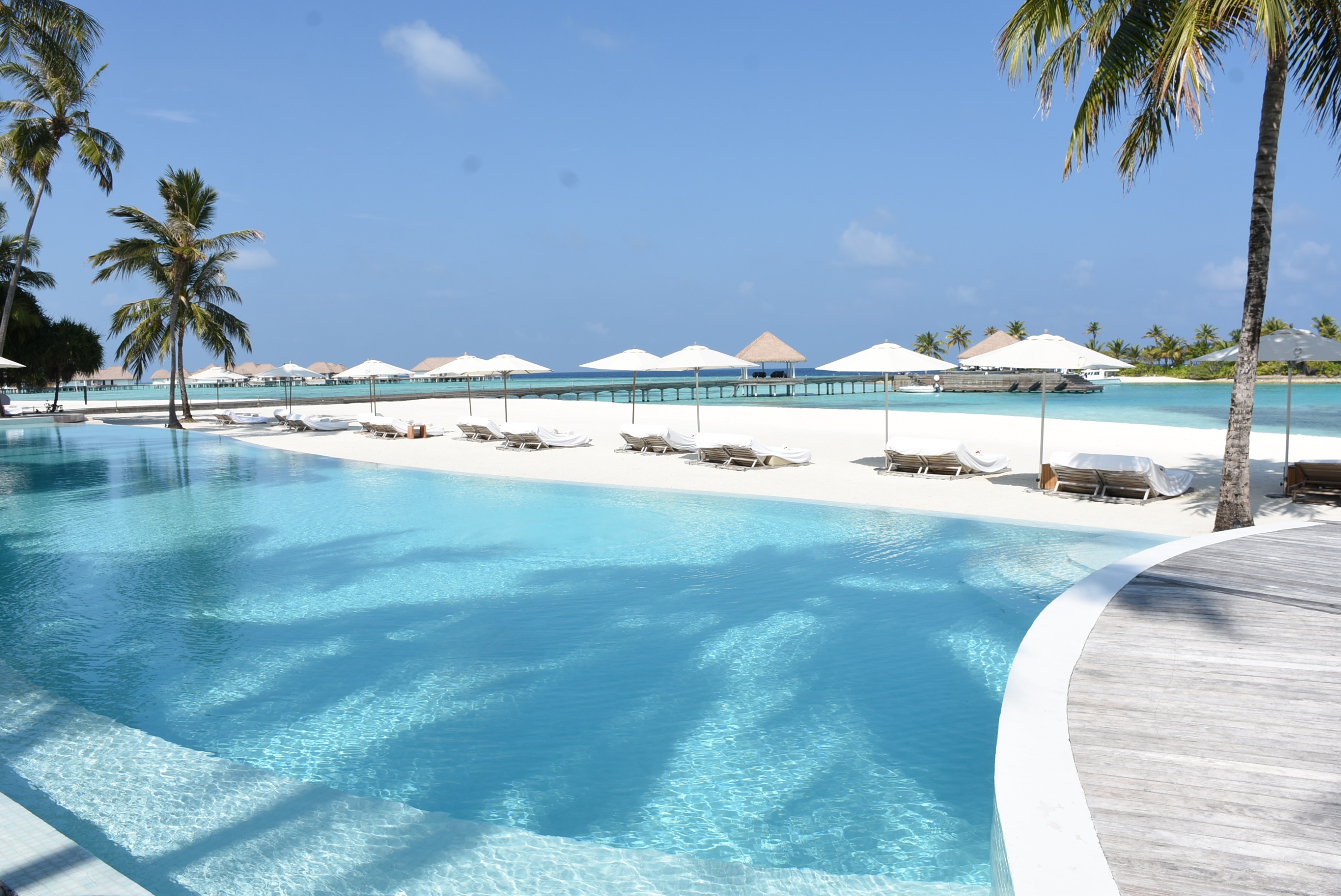 真っ白なビーチは貝殻や珊瑚が混じりふっかふかというわけにはいかないのですが、それがまた手つかずのリゾートの証拠だと感じました。レストランのサンドカーペットも心地良く、滞在中ずっと裸足で過ごしていました。