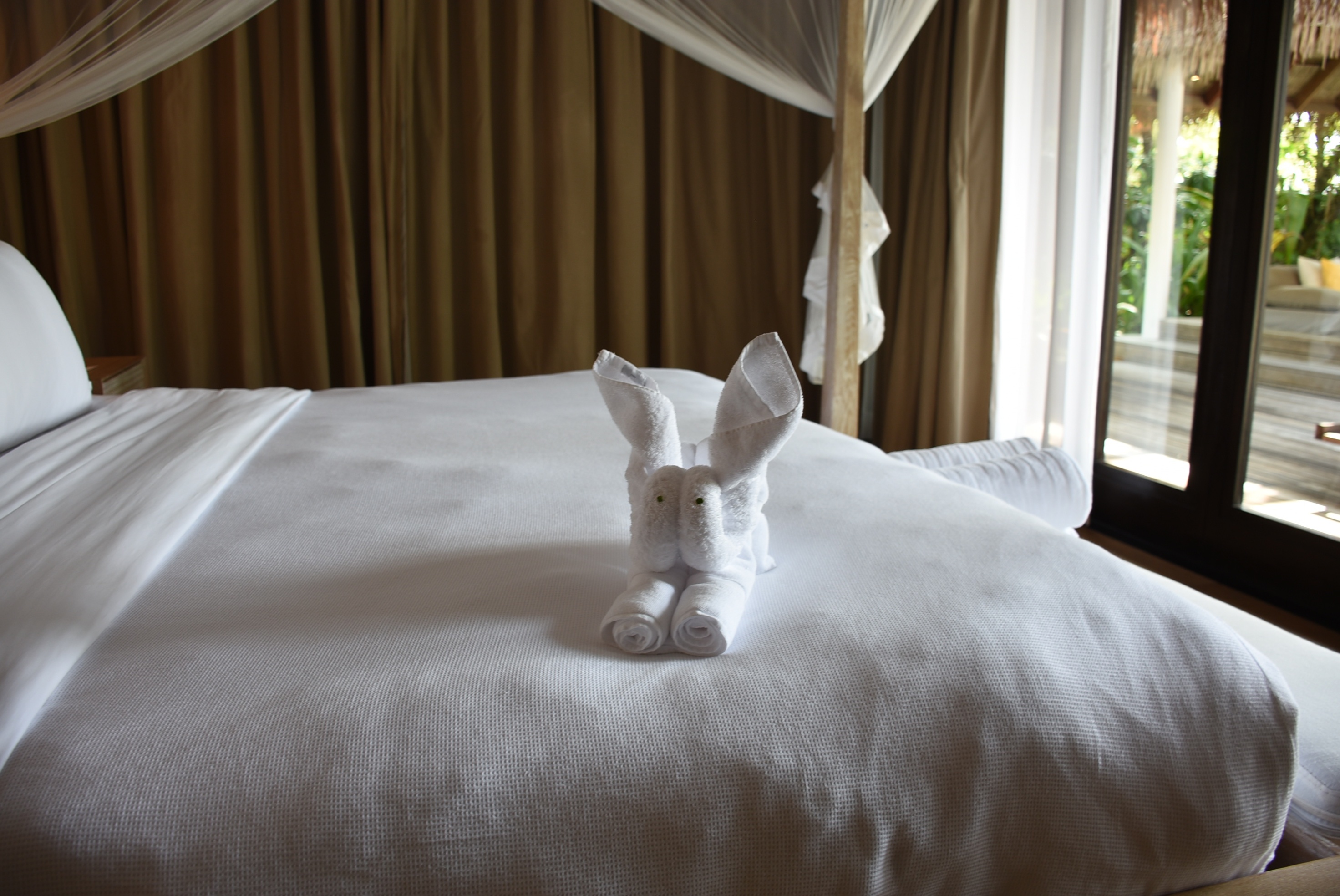 滞在中付かず離れず、頼りになって安心をくれた有能なバトラー。完璧な気遣いで気持ちのいい空間を毎日提供してくれたハウスキーパー。特に毎朝ごはんから戻るとベッドに鎮座のタオルアートには、にんまりしたり感動したり、感激しきりでした。