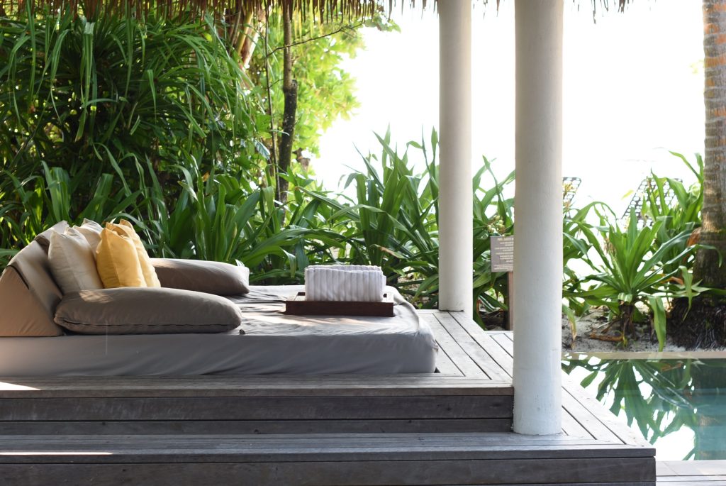 お部屋はビーチスイートという一番下のカテゴリーながら、滞在中のあらゆる動線が最高に考えられていて、ナチュラルで落ち着きがあって上質のインテリア、アメニティもグレードが高くとっても優雅な気分でした。今回13回目のモルディブ滞在ですが、快適度や便宜性を考えると私には気持ちよさNO1のお部屋でした。