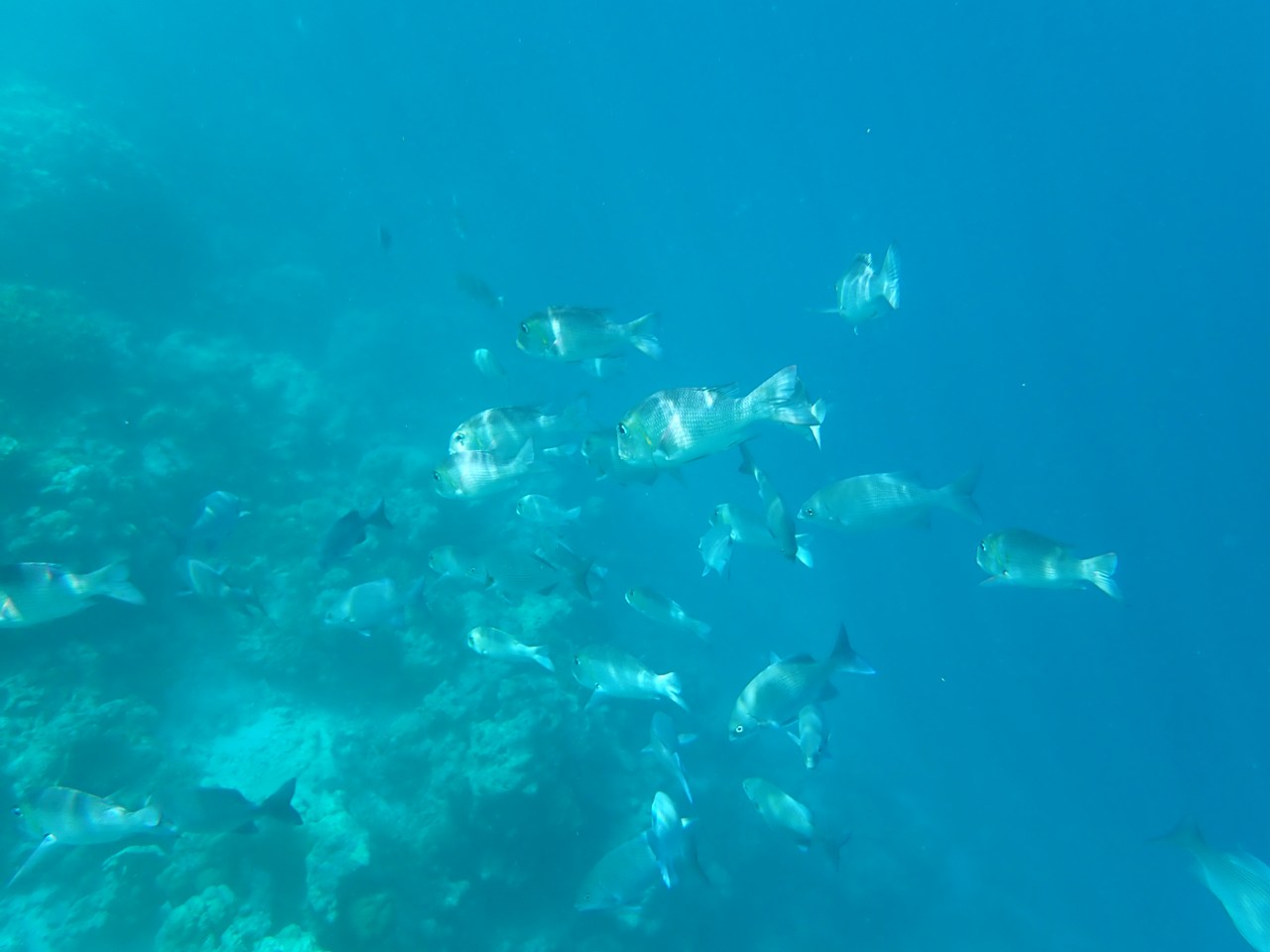 生憎、透明度は悪かったものの、魚の群れを発見。カレントもきつくないので楽しめました。