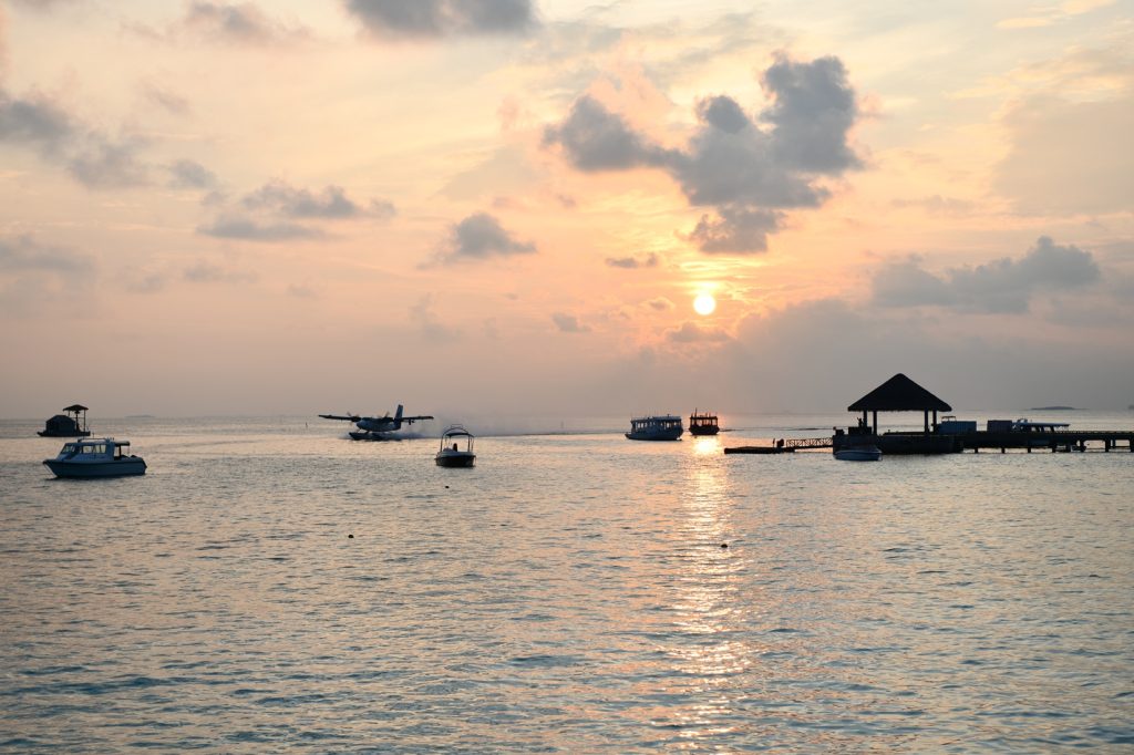 早朝、マーレへ向けて飛び立つ水上飛行機