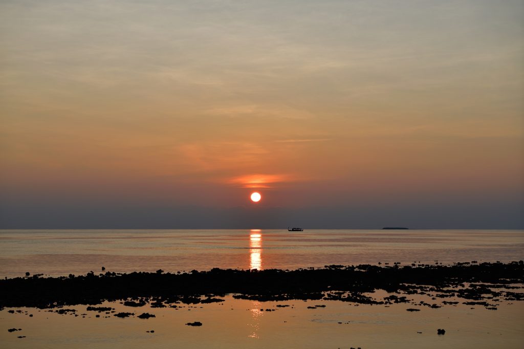私たちが滞在したときは午前中が満潮に近く、午後から日の入りの時間帯が干潮でした。