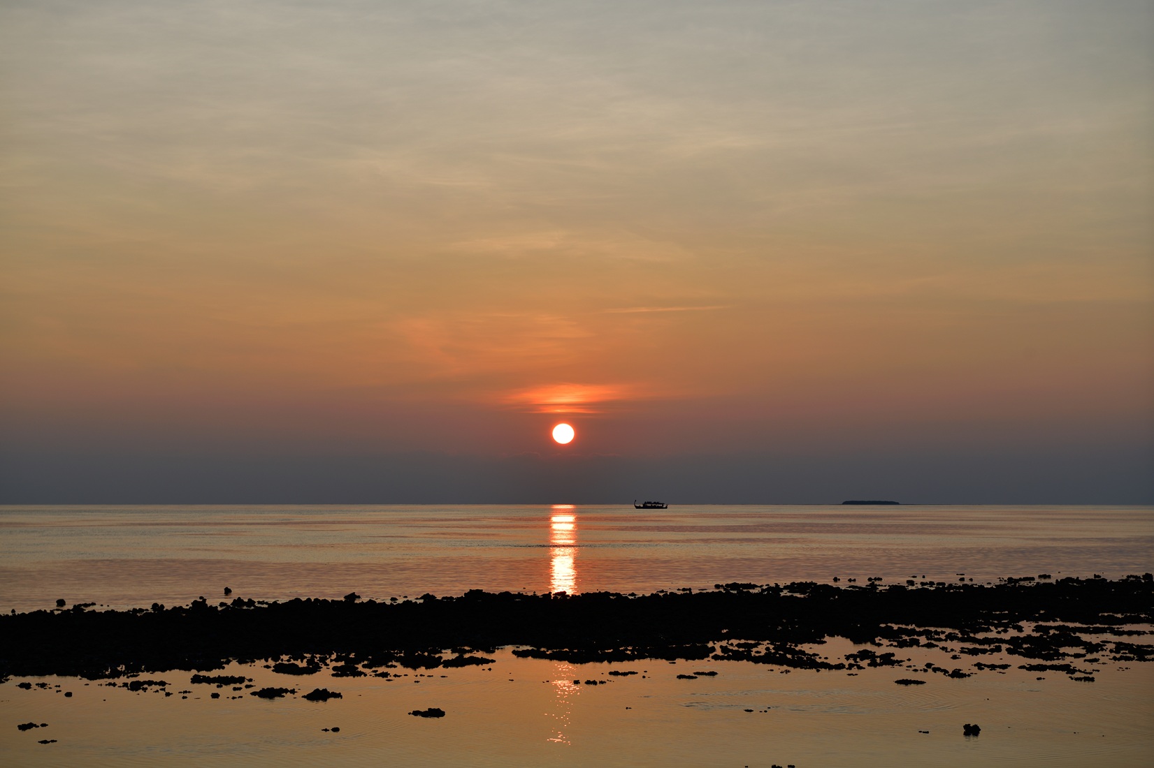 水平線へ沈む夕日