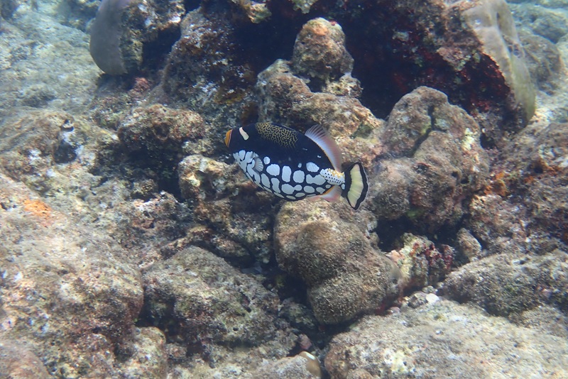 満潮の時間帯なら、サンゴや岩礁にいる魚を適度な深さで見ることができました。