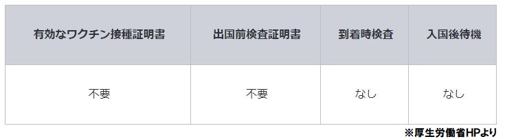 - 日本に入国する全ての旅客は、有効なワクチン接種証明書(3回接種済み)または 出国前72時間以内に受けた検査の陰性証明書の提示は不要となりました。