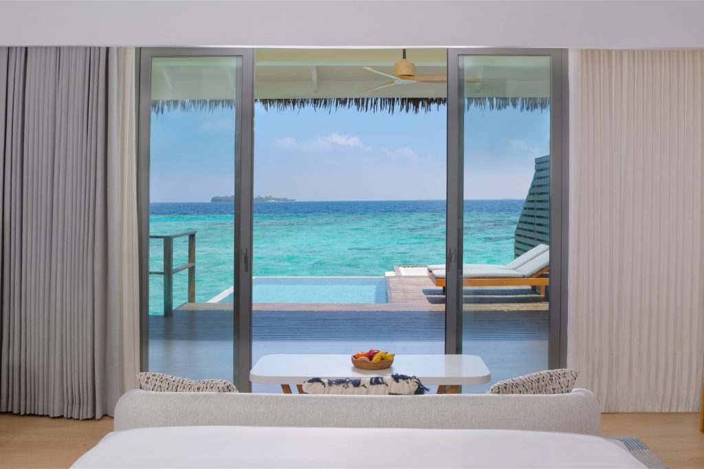 - ウォーターフロントプールヴィラは陸地にお部屋、水上にテラス