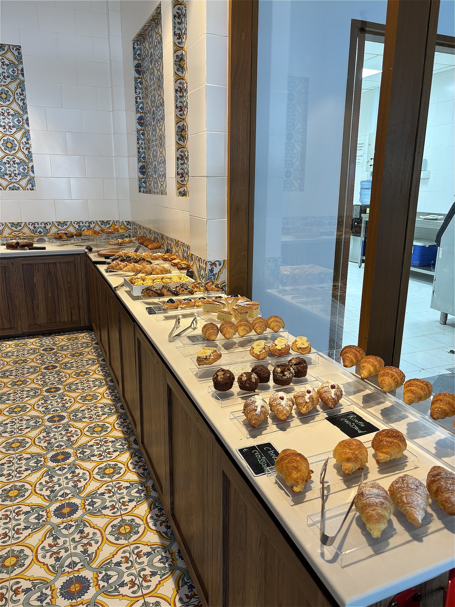 色鮮やかな花の模様が描かれたタイル床