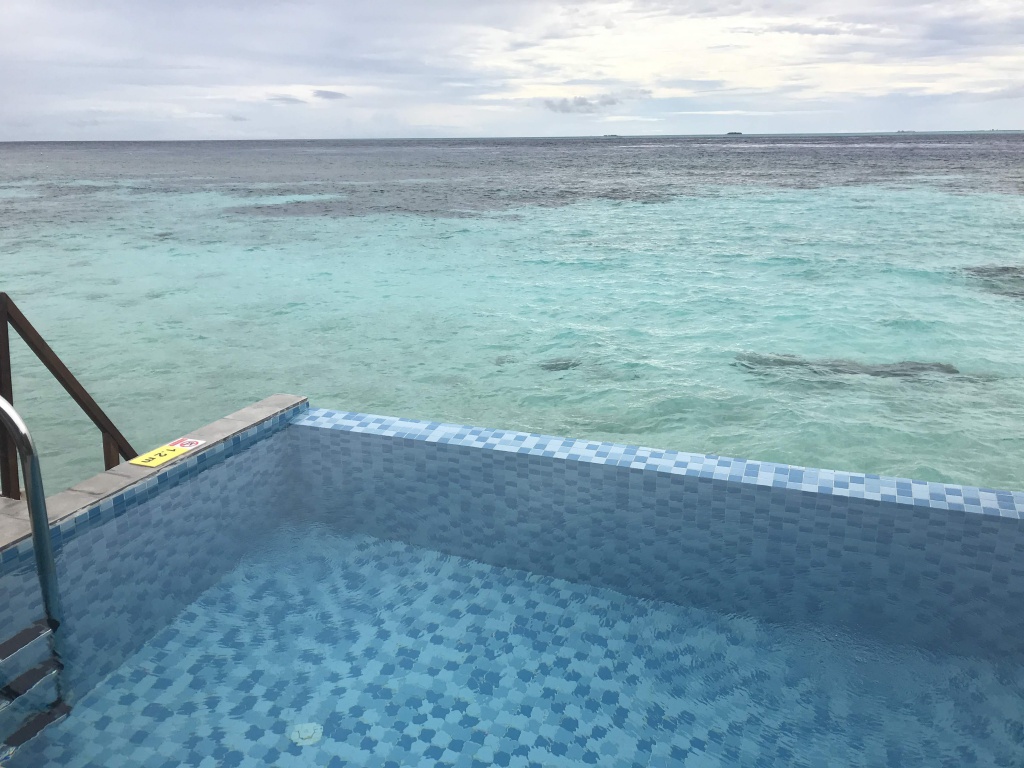 ラグーンヴィラ、お部屋のプール。泳げる広さはないけど、浸かって、塩抜きするには十分!