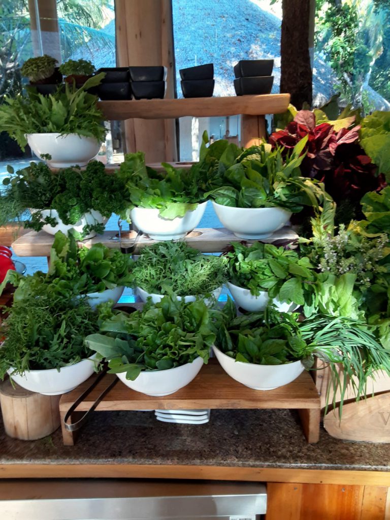 今日も味も美味しく(taste)、グリルされた料理の香ばしい匂い(Smell)、色鮮やかな食材(eyesight)、風にそよぐ椰子の葉やスタッフとゲストの笑い声(hearing)、砂の上を心地よく裸足で歩き(touch)、そしてこの空間にいることで癒され、心穏やかになる・・(Senses)