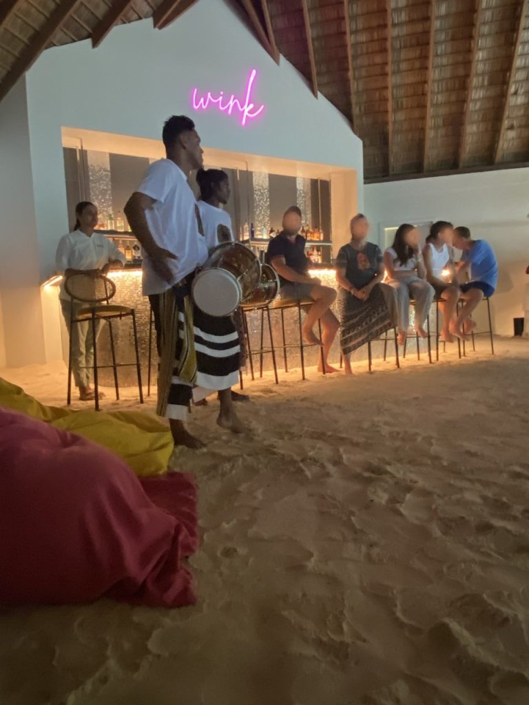 日本語が少し話せるイギリス人ご夫婦が声をかけてくださり、ディナー後にバーに誘われました。片言の日本語と英語で楽しいひと時を過ごしました。他のゲストと交流できるのも、ノヴァのフレンドリーな雰囲気と小さい島だからかも。