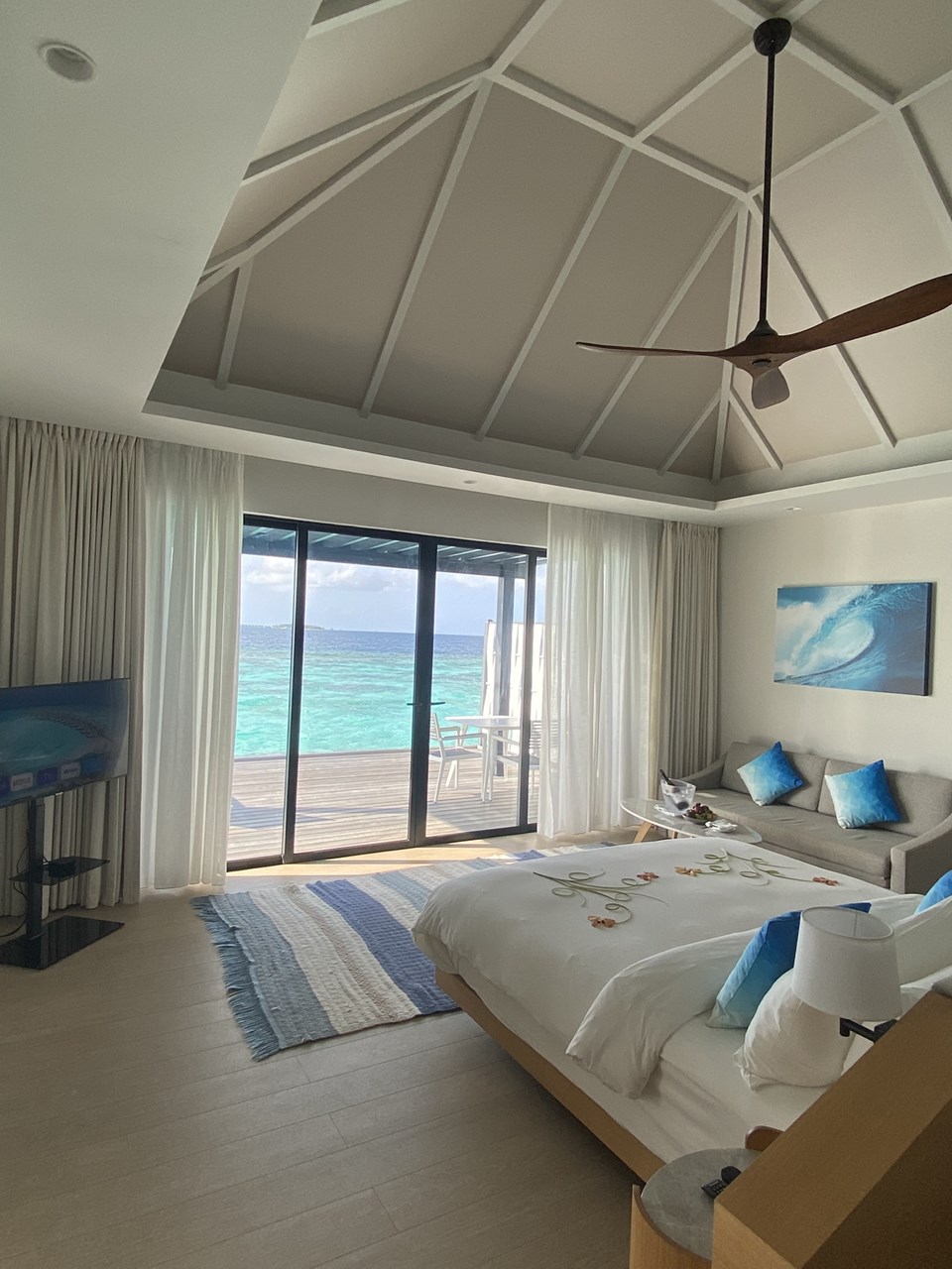 広々とした水上ヴィラは動線が非常に良く、とても使いやすかった。スッキリとしたインテリアで清潔感もあって居心地抜群でした。