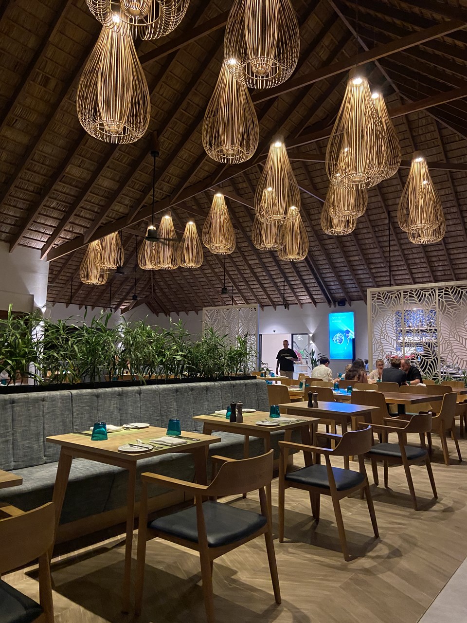 島内はヴィラ数が少ないためか、とても静かでした。レストランやバーも居心地も抜群!