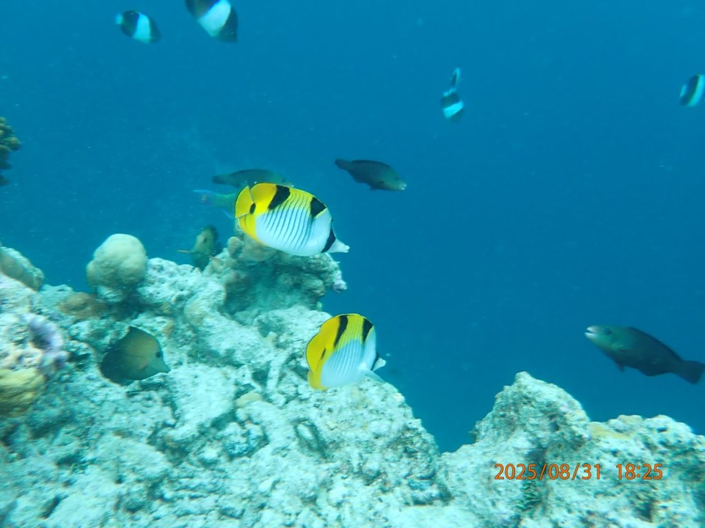 島を囲むハウスリーフには現在も数多くの魚たちが泳いでいて、楽しいシュノーケルになりました。