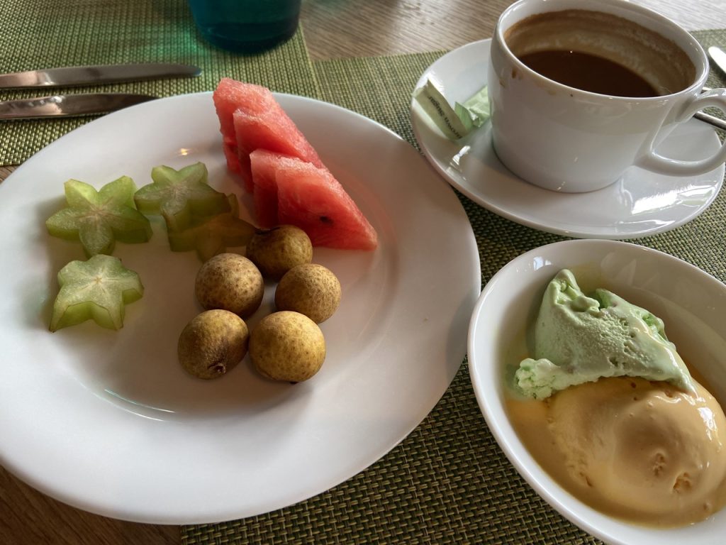 フレイムスのディナーでは、エグゼクティブシェフがテーブルまで来てくださり、お料理についての感想と改善点があれば教えて欲しいとのこと。ノヴァのアラカルトやブュッフェが美味しいのは、そのような心掛けがあるからなのですね。