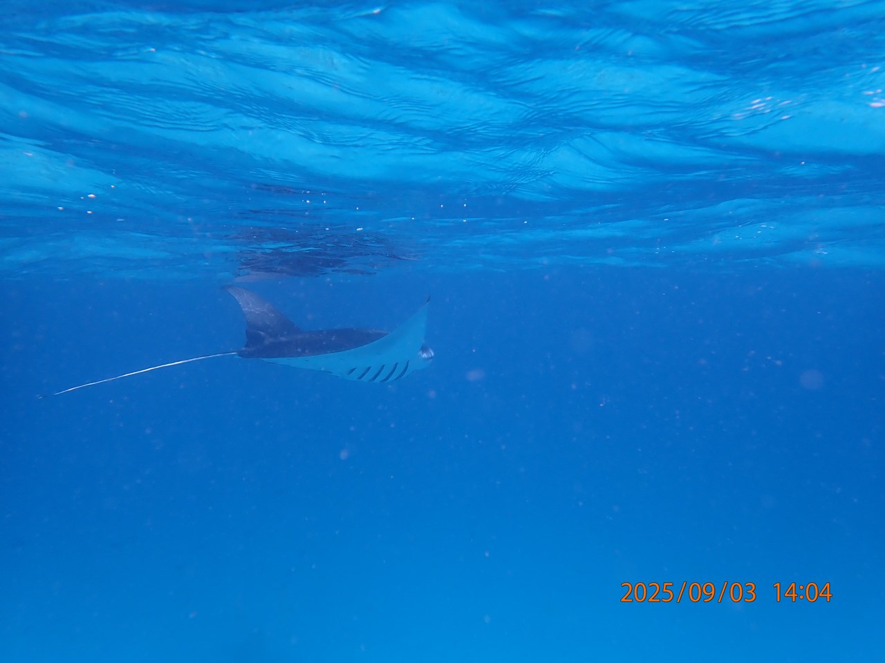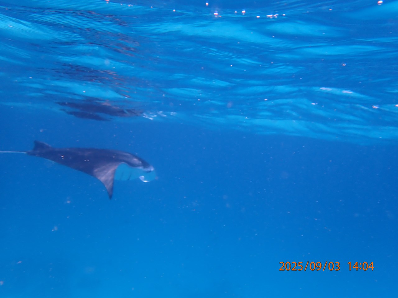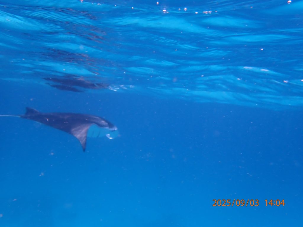 遭遇確率は60%ぐらいとのことでしたが、スタッフの懸命の捜索で、3箇所で4枚のマンタに会えました。雨季のバー環礁のようなマンタ乱舞では無いけれど、マンタを見るのは初めてだったので興奮しました。アリ環礁に来て本当に良かった!