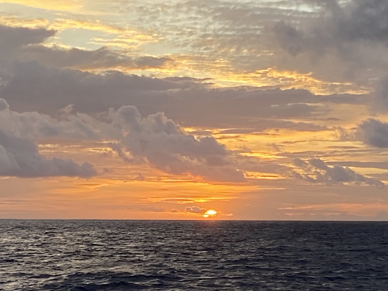 雲がオレンジ色に染まる美しい夕日が見られました