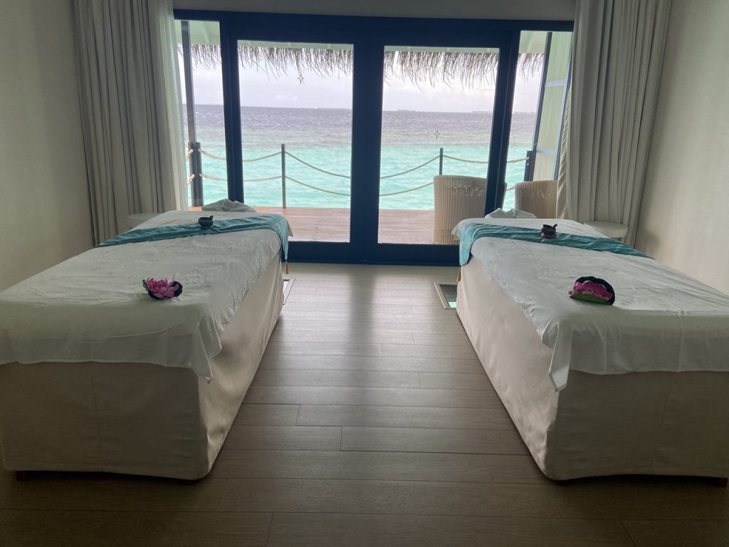 美しい海に建てられたスパのトリートメントルーム