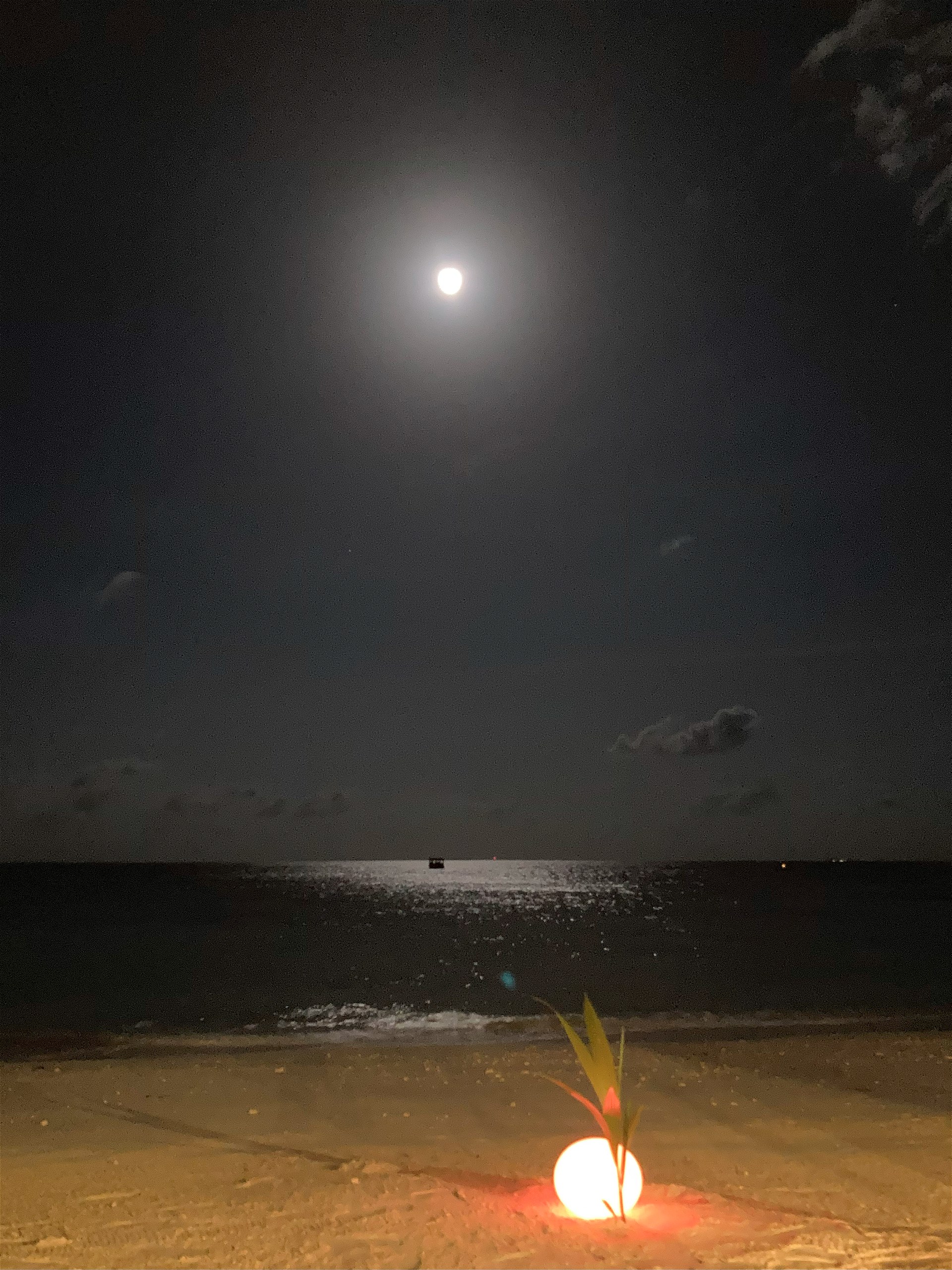 Fire Pitはオープンエアのビーチで食事をする所で、月曜と木曜のみオープンするレストランなのに、皆既月食だった日曜に合わせてオープンしていたのは、さすがだなぁと思いました。