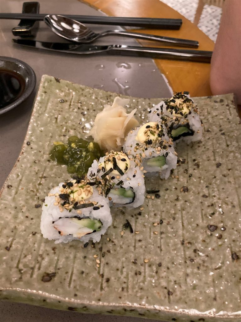 食事は、量が多いものもありましたが、どのレストランで食べてもおいしかったです。水上島のレストランのお寿司、ここが海外とは思えない程おいしかったです。