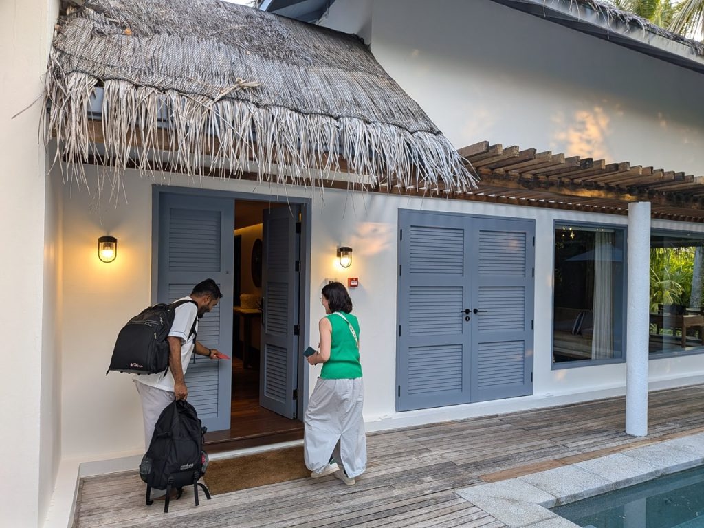 今回はご結婚25周年記念という特別なご旅行ということで、初めての2島滞在。モルディブの原風景・昔を感じさせる手付かずの美しさを体験されたいということで選ばれた『ラッフルズ・モルディブ』。日本出発後、約30時間もの時間がかかりましたが、ラッフルズなどがあるガーフ環礁は、昔のモルディブをご存知の方にとっては、懐かしくもあり、これぞモルディブ!と感じられる圧倒的な秘境感が味わえますよね。私達も、国内線移動のリゾートに訪れると、童心に帰るような感動を覚えます。