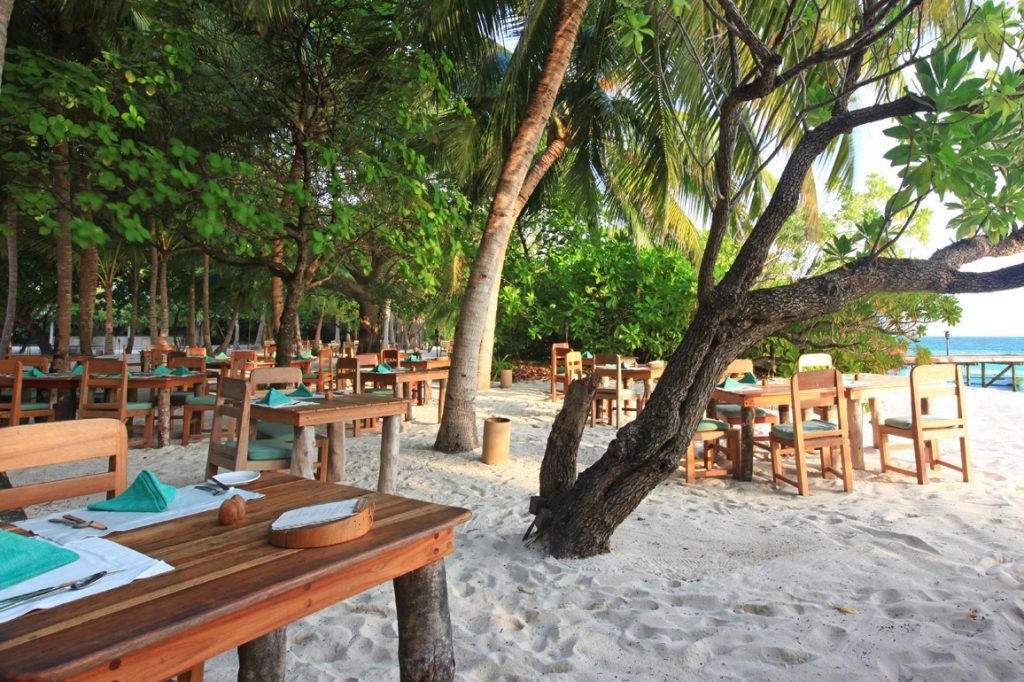- ビーチに造られたMihiree Mithaaレストラン
